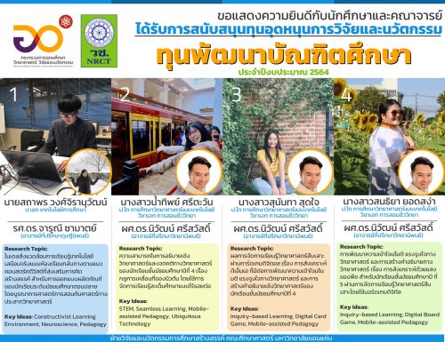 นักวิจัยศึกษาศาสตร์ ผ่านการพิจารณา สนับสนุนทุนอุดหนุนการวิจัยและนวัตกรรม ทุนพัฒนาบัณฑิตศึกษา ประจำปีงบประมาณ 2564 12/05/2021 14:50 น.