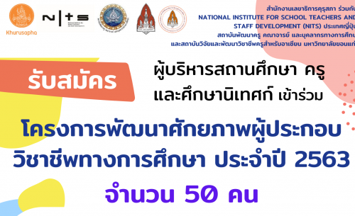 ประชาสัมพันธ์ รับสมัครเข้าร่วมโครงการพัฒนาศักยภาพผู้ประกอบวิชาชีพทางการศึกษา ปี 2563 รุ่นที่ 3 22/02/2021 15:10 น.