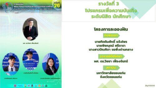ผลงานนักศึกษาวิศวกรรมคอมพิวเตอร์ คว้ารางวัลที่ 3 ในการแข่งขันพัฒนาโปรแกรมคอมพิวเตอร์แห่งประเทศไทย ครั้งที่ 26 21/08/2024 14:42 น.