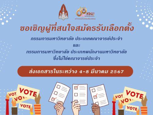 ปักหมุด! 4-8 มี.ค. มข.เปิดพื้นที่ลงชิงเก้าอี้ “กรรมการสภามหาวิทยาลัย” ก่อนเลือกตั้งออนไลน์ 22 และ 25 มี.ค. 67 28/02/2024 14:53 น.