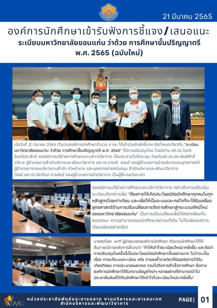 เมื่อวันที่ 21 มีนาคม 2565 ตัวแทนองค์การนักศึกษาจำนวน 4 คน ได