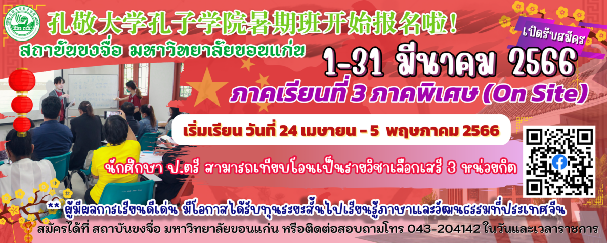 สถาบันขงจื่อ มหาวิทยาลัยขอนแก่น รับสมัครเรียนภาษาจีน ภาคเรีย