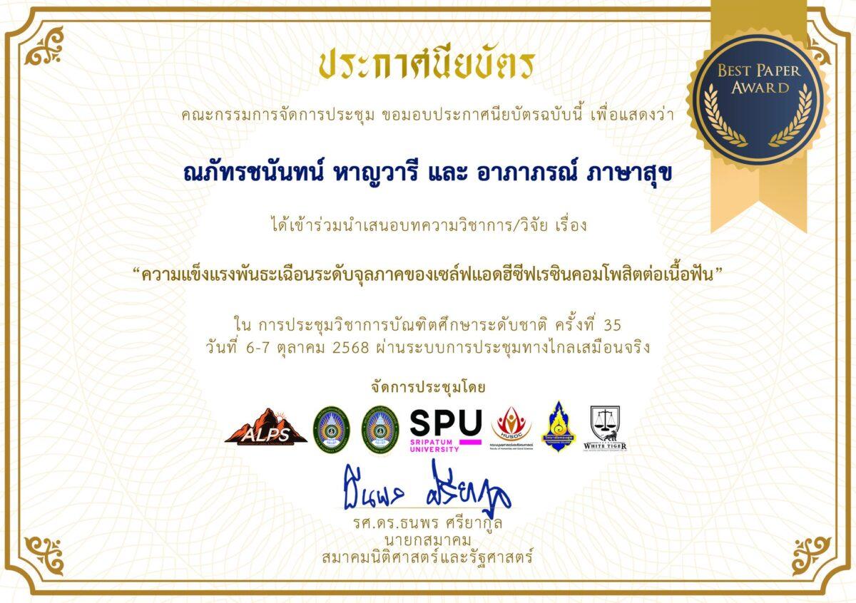 พ.ย. 12 2025 คณาจารย์และนักศึกษาทันตแพทย์ มข. คว้ารางวัล “Best Paper Award” จากเวทีประชุมวิชาการระดับชาติ ครั้งที่ 35 SDG 17: Partnerships for the Goals ความร่วมมือเพื่อการพัฒนาที่ยั่งยืน, การนำมหาวิทยาลัยสู่ความเป็นนานาชาติ, ปรับเปลี่ยนการจัดการศึกษา / By หญิง โพธิสุวรรณ คณะทันตแพทยศาสตร์ มหาวิทยาลัยขอนแก่น ขอแสดงความยินดี ทพญ.ณภัท คณาจารย์และนักศึกษาทันตแพทย์ มข. คว้ารางวัล “Best Paper Award” จากเวทีประชุมวิชาการระดับชาติ ครั้งที่ 35 Read More »