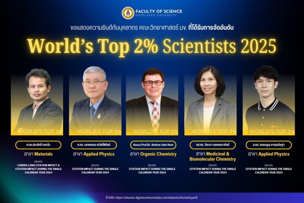 ต.ค. 1 2025 อาจารย์คณะวิทยาศาสตร์ ได้รับการจัดอันดับ World’s Top 2% Scientists ประจำปี 2025 ข่าวประชาสัมพันธ์และบริการ / By สุชาติ เทพภูเขียว คณะวิทยาศาสตร์ มหาวิทยาลัยขอนแก่น ขอแสดงความยินดีกับบุคลากรที อาจารย์คณะวิทยาศาสตร์ ได้รับการจัดอันดับ World’s Top 2% Scientists ประจำปี 2025 Read More »