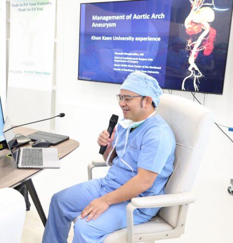 การอบรมเน้นเทคนิค Frozen Elephant Trunk (FET) สำหรับผู้ป่วยหลอดเลือดแดงใหญ่ส่วนโค้งที่ซับซ้อน โดยใช้อุปกรณ์ Evita Open Neo ที่ได้รับการยอมรับในระดับสากล ทั้งนี้ได้รับเกียรติจาก Dr. Michael O’Keefe จาก Royal Melbourne Hospital ประเทศออสเตรเลีย และ แพทย์ผู้เชี่ยวชาญในประเทศหลายท่านร่วมถ่ายทอด ประสบการณ์จริง