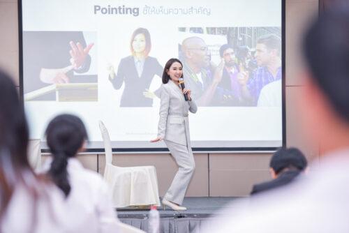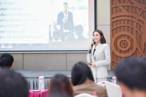 Communications expert Dr. Nattasorn Suksarnamornkul led the session, providing training on professional speaking techniques, stage presence, and event hosting. The program included practical exercises designed to help participants build confidence and refine their skills.