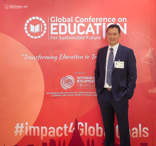 Asst. Prof. Dr. Ong-art Namwong, Chair of the Language Education Division and Chairperson of the TESOL International Program at the Faculty of Education, Khon Kaen University, was honored as a Panel Speaker at the Global Conference on Education for a Sustainable Future (GCE 2026). Held under the theme “Transforming Education to Transform the World,” the conference took place at the United Nations Conference Centre (UNCC) in Bangkok on February 11, 2026. This global event was organized by the Sustainable Development Council (SDC) in collaboration with international partners to drive educational reform that is resilient, inclusive, and responsive to rapid global shifts.