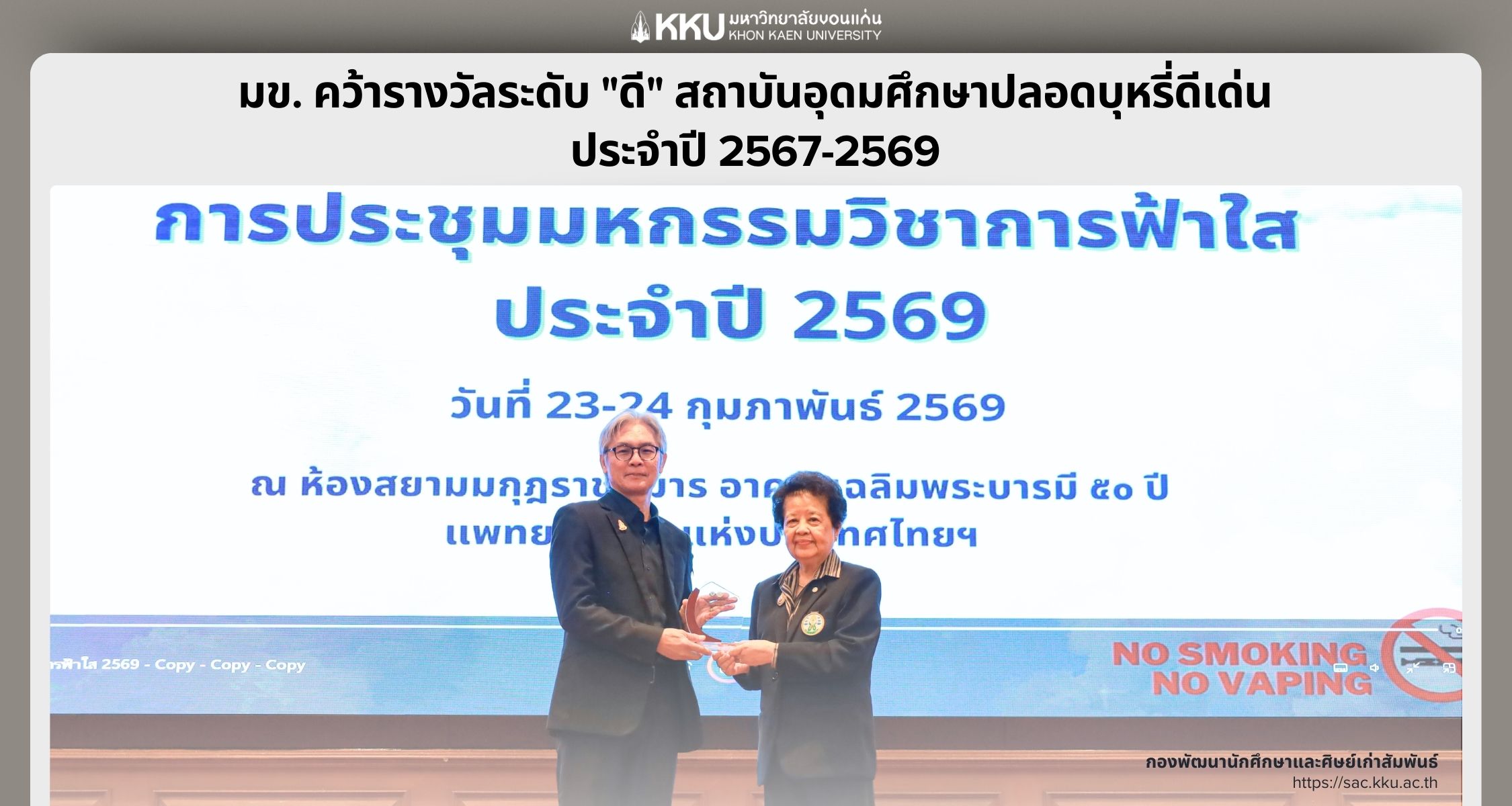จากนั้น รศ.นพ.ชาญชัย พานทองวิริยะกุล อธิการบดีมหาวิทยาลัยขอนแก่น พร้อมผู้บริหาร อาจารย์ บุคลากร ได้ร่วม “พิธีชื่นชมยินดีบัณฑิตใหม่ ประจำปี2563” ณ ห้องประชุม NK 2217 ชั้น 2 อาคารเรียนรวมและปฏิบัติการ1 คณะสหวิทยาการ มข. วิทยาเขตหนองคาย ซึ่งบรรยากาศภายในงานเต็มไปด้วยความความสุข ความยินดี อบอุ่นเป็นอย่างยิ่ง