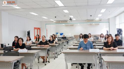 Associate Professor Orathai Piayura, Ph.D., Dean of the Faculty, graciously presided over the opening ceremony. Assistant Professor Benyathip Supakalin, Ph.D., Acting Director of the Language Centre, delivered the project report, while Assistant Professor Thinawat Sroikudrua, Ph.D., Chair of the Master of Arts Programme in Thai, offered a welcome address and introduced the course faculty members. Over 20 administrators and faculty members attended the event, which took place in the Smart Classroom (4-A1) on the 4th Floor of the Rattanapittaya Building, Faculty of Humanities and Social Sciences, Khon Kaen University.