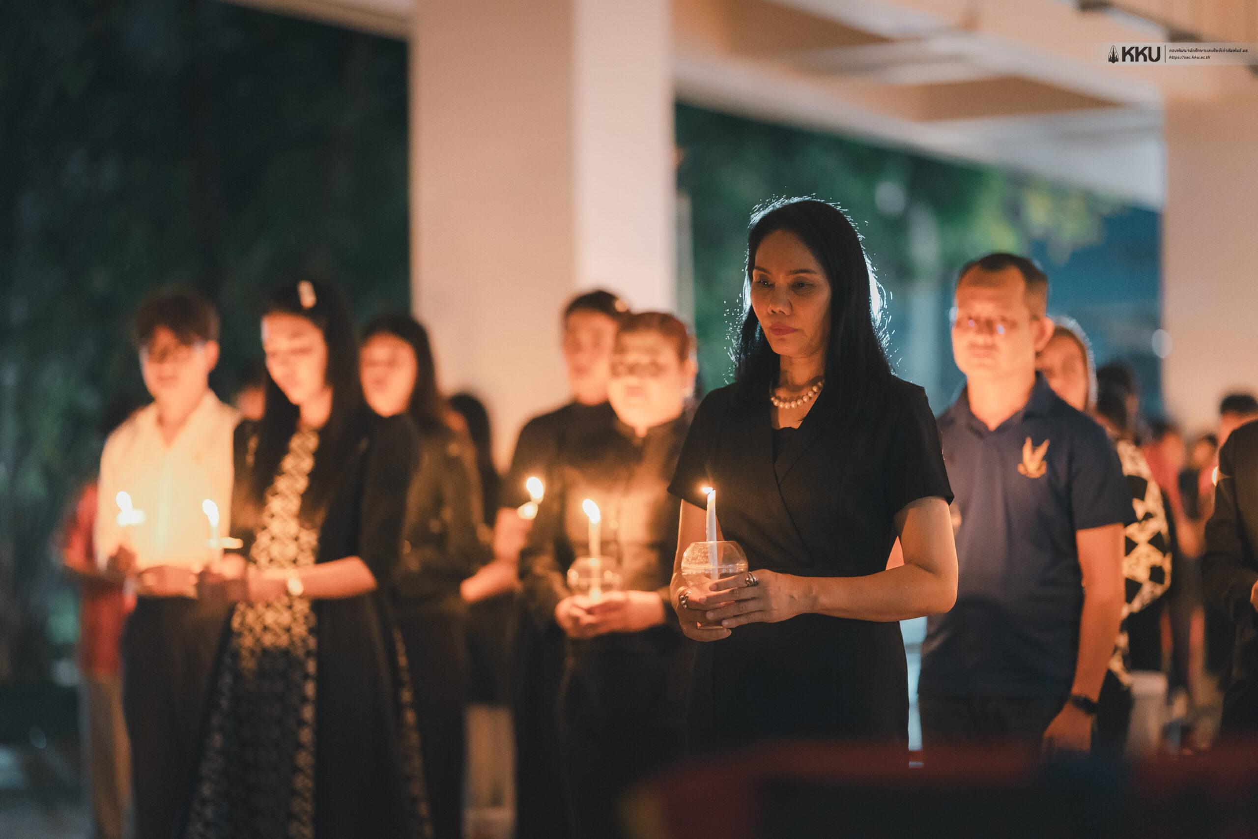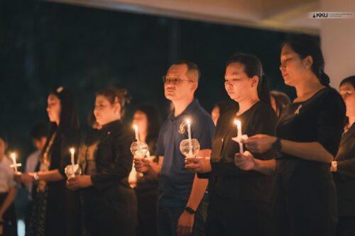 The event commenced with a candle-lighting ceremony to honour the late King Bhumibol Adulyadej (Rama IX) in remembrance of “The Monarch Who Has Departed to Heaven.” The Sri Patcharin Band from the 23rd Military District (Sri Patcharin Camp) performed the Royal Composition, “Blueday” (Āthit Āpsaeng), creating an atmosphere thick with grief and high emotion. This was followed by a moving lyrical recitation of condolences delivered by Mr. Phuwadol Phuyohat and Miss Sunisa Wirajan, recipients of the Sri Kalapruek Award for Thai Arts and Culture.