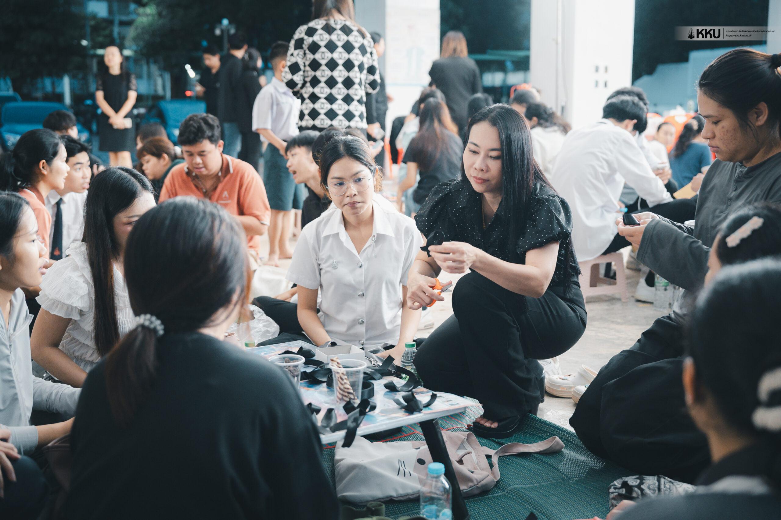 The event also featured informational activities on physical and mental health care provided by the Mental Health Center 7 Khon Kaen, led by Director Siriport Phutthiphornophat. These sessions aimed to equip students with proper stress management techniques. In addition, there were creative activities, including a “Desserts of Happiness” booth and a volunteer activity for making bows.