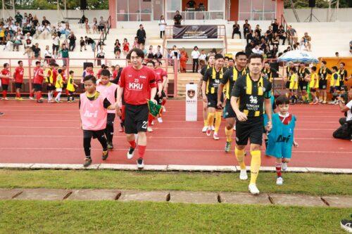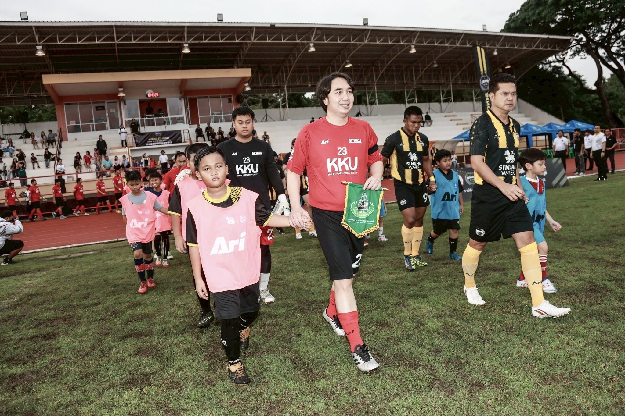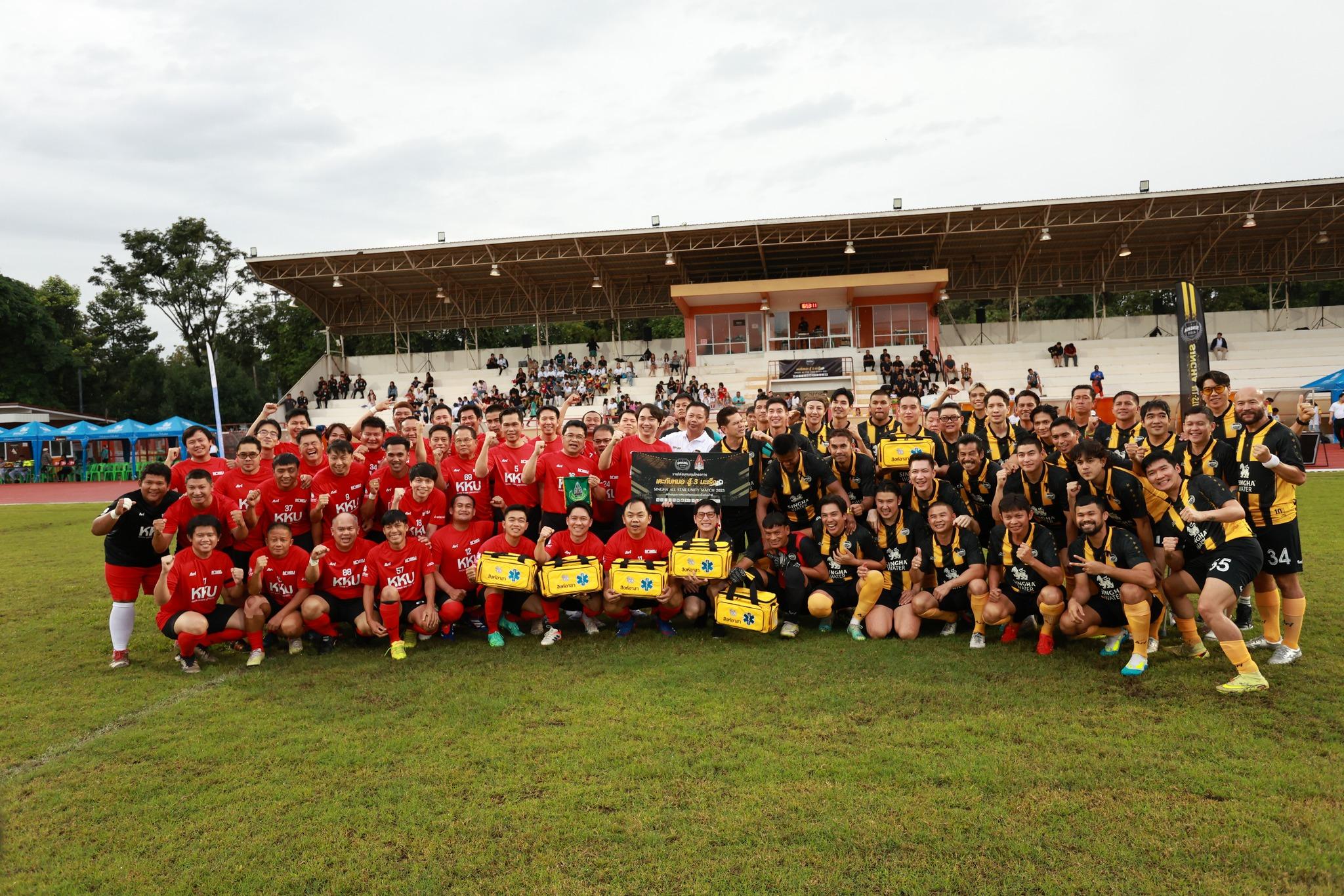 The star-studded SINGHA ALL STAR team, led by Somchai Khemklad, featured celebrities and athletes, including Tao Somchai, John Bravo, Buakaw Banchamek, and Tono Pakin. They competed against a team composed of medical professionals and staff from Khon Kaen University, alongside youth participants from the football clinic and members of the public who attended the event in large numbers at the KKU 50th Anniversary Stadium.