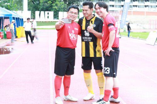 The charity football event commenced from 15:00 onwards. Activities began with the Singha Youth Football Clinic, followed by the opening ceremony which included paying respects to Her Majesty Queen Sirikit The Queen Mother. The programme featured a three-quarter charity football match, a mini-concert by the SINGHA ALL STAR celebrities, an auction of signed celebrity memorabilia, and concluded with a musical performance titled ‘With Love and Remembrance, Paying Tribute to Her Majesty The Queen Mother’ by students and the band No One Else.