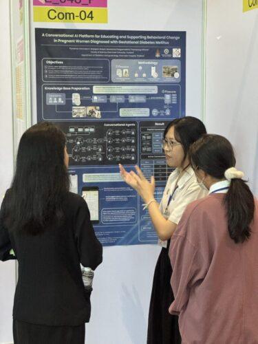 The students were recognised for their research project entitled “A Conversational AI Platform for Educating and Supporting Behavioural Change in Pregnant Women Diagnosed with Gestational Diabetes Mellitus.” This project was conducted collaboratively with Khon Kaen Hospital, with Dr. Monsicha Mekcharasnpab and Associate Professor Thanapong Intaradet, Ph.D., serving as project advisors.