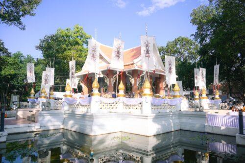 The Worshipping Ceremony for Chaopho Mor Din Daeng is held annually to boost morale, provide spiritual encouragement, and bestow good fortune upon the executive board, academic staff, students, and all devotees who come to pay homage. The shrine, established in June 1966, honours the guardian spirit according to the traditional beliefs of Southeast Asia (Usakane). The ceremony also serves to demonstrate cultural unity, reinforce the spiritual bond with the University’s location, and express gratitude to the revered sacred entity that has continuously protected, guided, and blessed the people of Khon Kaen University.