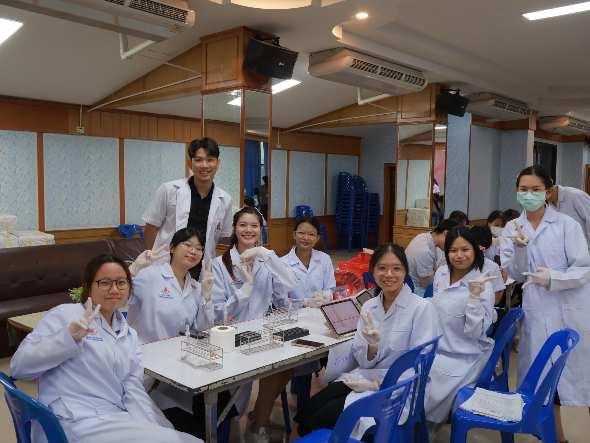 The activity was led by Associate Professor Dr. Jureerat Daduang, Dean of the Faculty of Associated Medical Sciences, along with faculty members, staff, and third-year Medical Technology students who participated in providing cotinine analysis services.