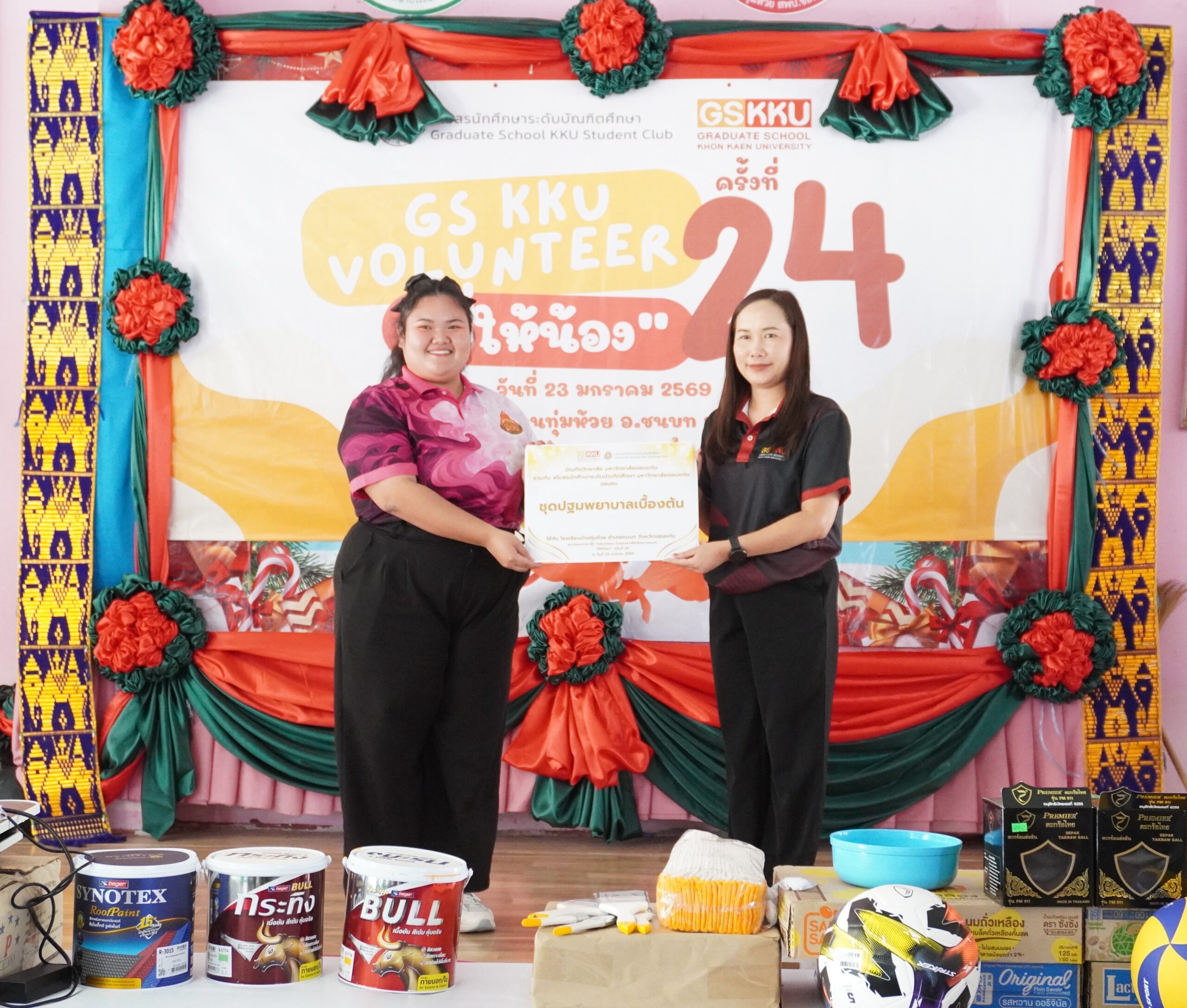 The Graduate School, Khon Kaen University, in collaboration with the Graduate Student Club, successfully organized the 24th GS Volunteer ‘Phi Hai Nong’ (Seniors Give to Juniors) Community Development Program. The event took place from 22–23 January 2026 at Ban Tum Huay School in Chonnabot District, Khon Kaen Province. More than 60 participants, including graduate students, academic staff, and university personnel, joined the activities alongside the school’s students, teachers, and staff.