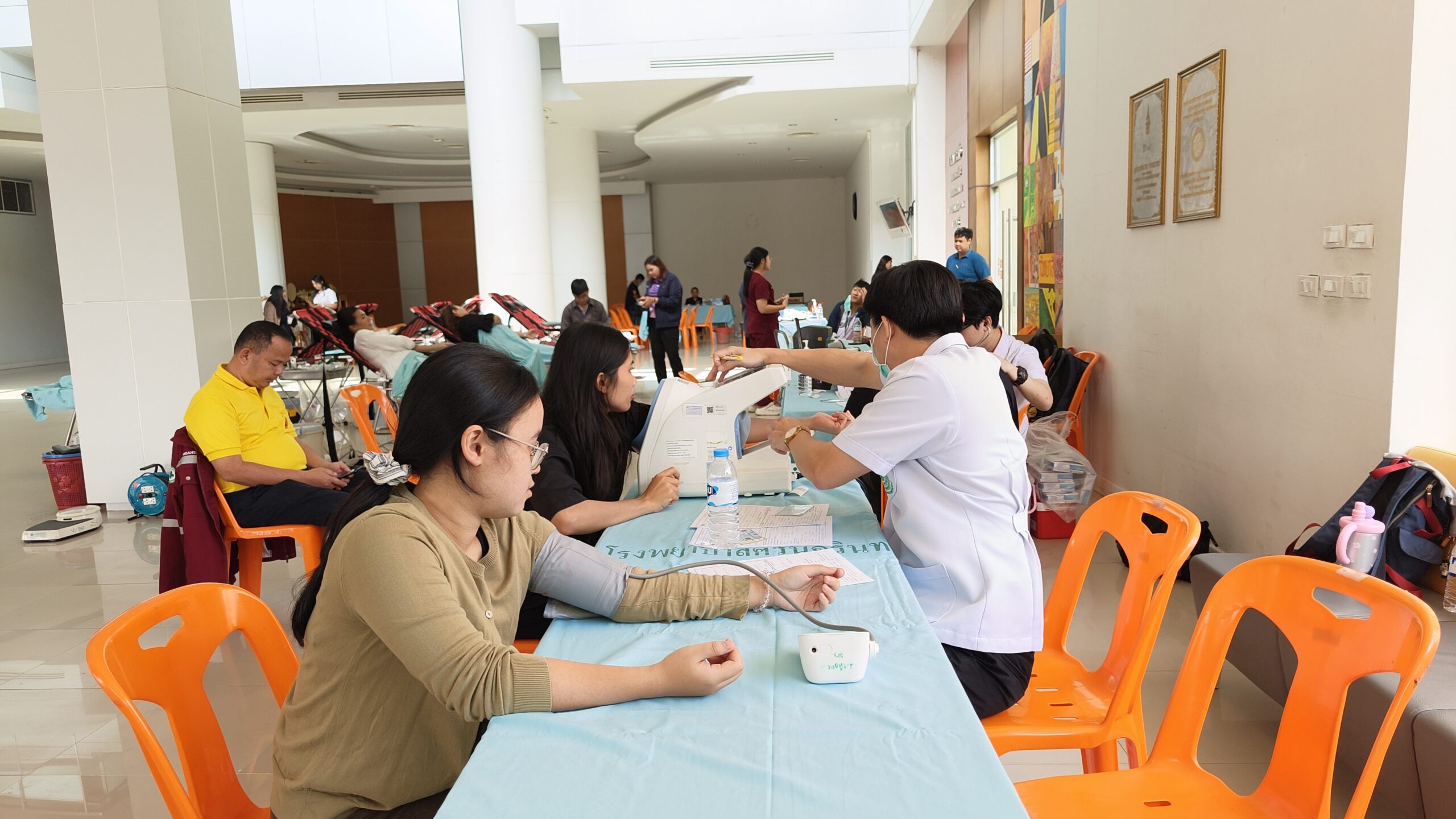 Associate Professor Dr. Jutaporn Sawaengkaew, Acting Deputy Director of the Coordinating Center for the Plant Genetic Conservation Project Under the Royal Initiation of Her Royal Highness Princess Maha Chakri Sirindhorn – Khon Kaen University (RSPGKKU), who donated blood at the event, shared her experience. She revealed that this was her fourth donation. Initially, she was afraid of needles but felt she should try. After undergoing the screening, which confirmed her blood values were suitable, she successfully completed her first donation. She has since donated at the Central Blood Bank at Srinagarind Hospital three more times.