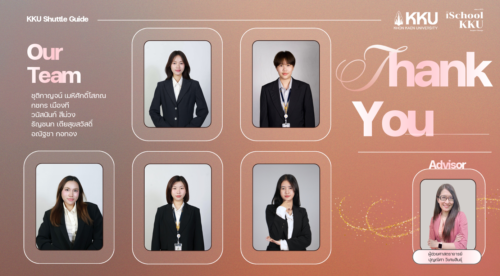 The five members of Team Beyond explained that their project, titled “Development of a Digital Service to Support Shuttle Bus Travel for Khon Kaen University Students Without Private Cars (KKU Shuttle Guide),” focuses on user-centred information design. The primary goals are to improve access to the transport system, reduce limitations for students without personal vehicles, and promote the sustainable use of public transport within the university.