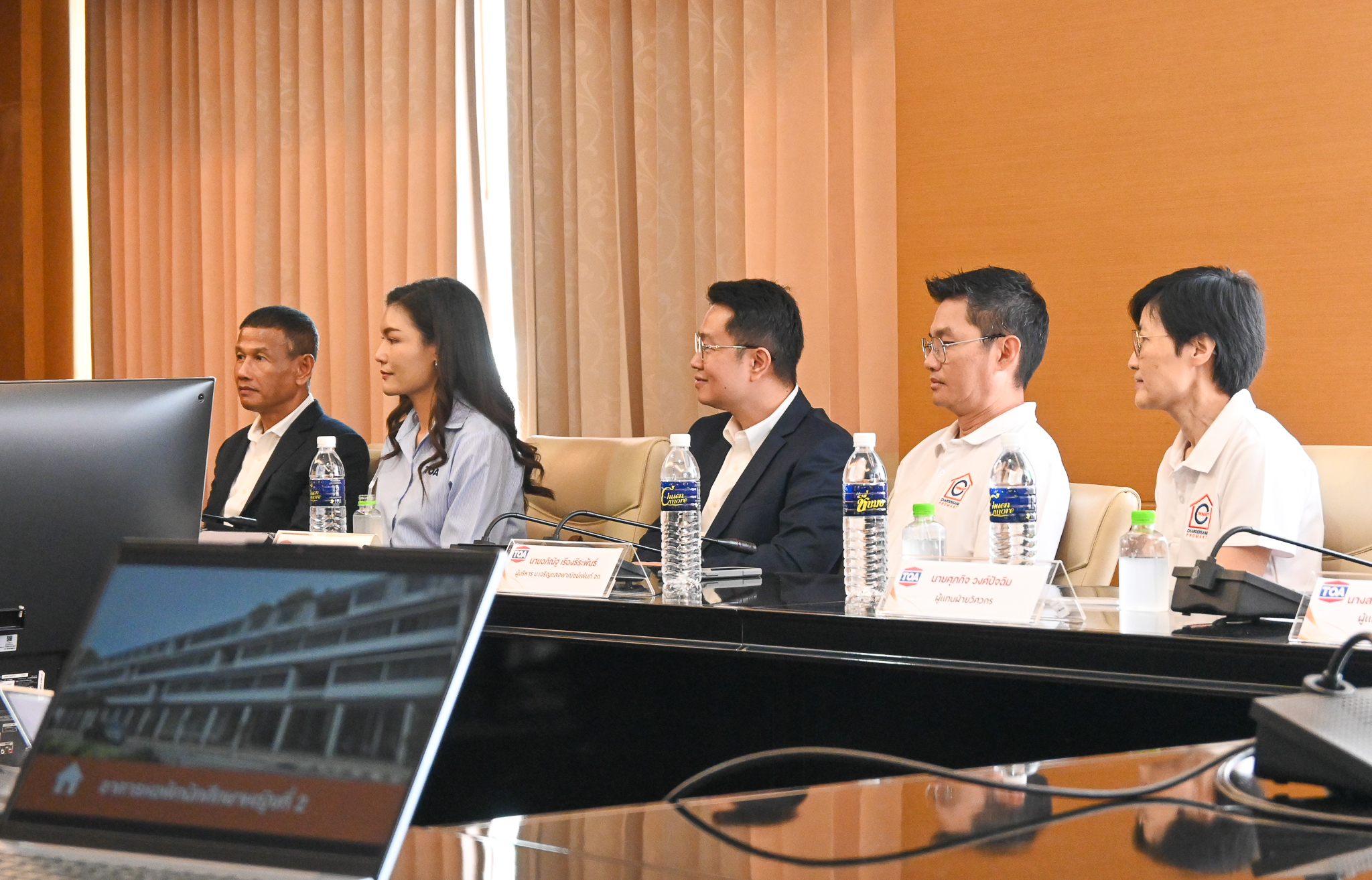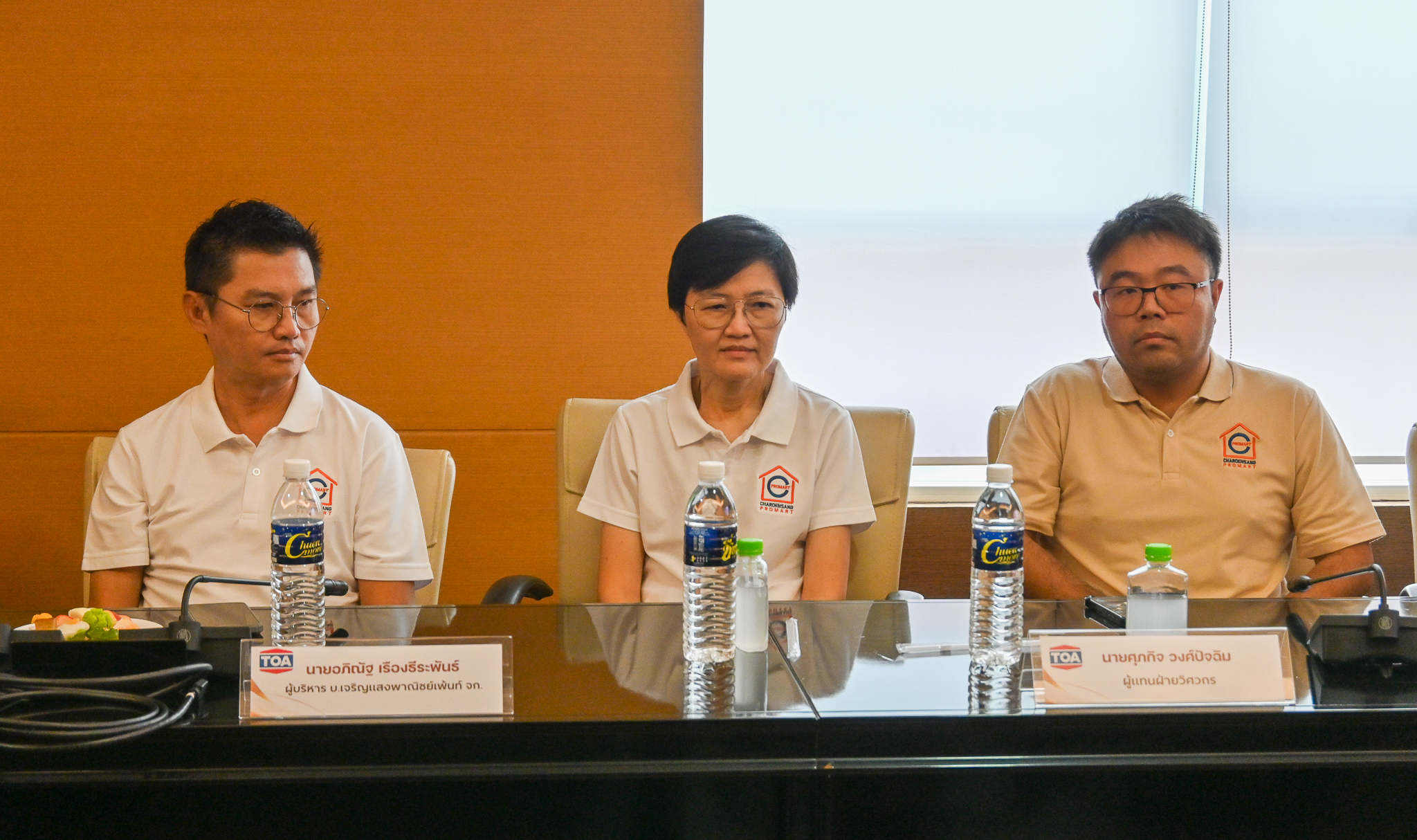 The executive team from TOA Paint (Thailand) Public Company Limited was led by Mr. Thanom Chinaworn, Deputy Director of Sales, accompanied by representatives from Charoen Saeng Phanit Paint Company Limited, an official TOA product distributor.