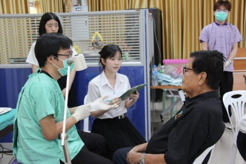 The Faculty of Dentistry, Khon Kaen University, organised an oral health promotion project titled “Healthy Teeth, Beautiful Smiles, Happy Lives for Seniors” on 14 March 2026 at Thetsaban Sam Liam School in Khon Kaen Province. The event, a collaboration between dental students from the Faculty of Dentistry and the Sam Liam community, aimed to provide the elderly with accurate knowledge and understanding of oral hygiene, proper tooth cleaning techniques, and denture care. The project also sought to raise awareness of the critical link between oral health and overall physical well-being, enabling participants to apply this knowledge effectively in their daily lives.