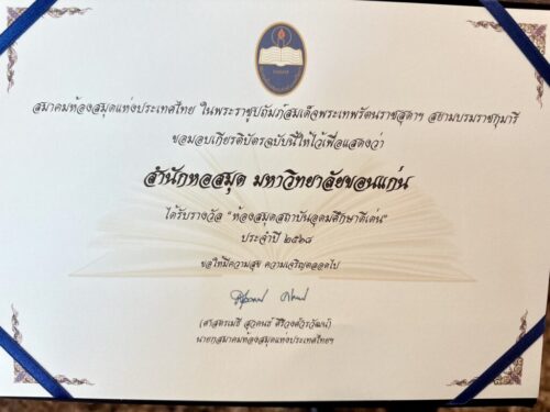 The award reflects the Khon Kaen University Library’s commitment to being a “Learning Centre for All,” continuously supporting the education, inquiry, research, and lifelong learning of students, faculty, staff, and the community. This dedication helps drive Khon Kaen University’s vision of becoming “A World-Leading Research and Development University.”
