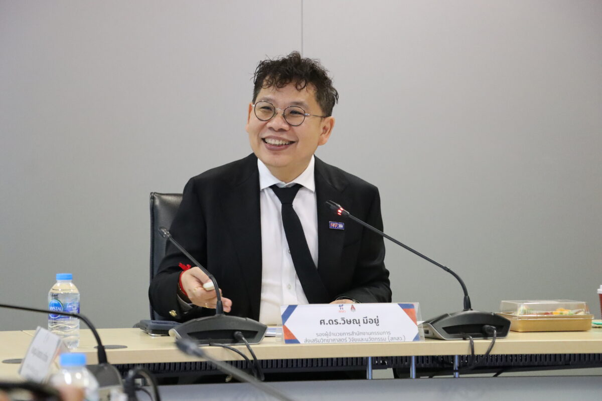 Professor Dr. Wisanu also introduced the TSRI Director’s “SRI for All” concept, which is driven by the SEAL strategy: Seamless Synergy, an Intelligence System for project monitoring, Leap Technology Investment to drive the new economy, and Knowledge Governance through an Open Science platform. This framework aims to ensure that both FF and Strategic Fund (SF) budgets effectively advance research toward impactful RU.