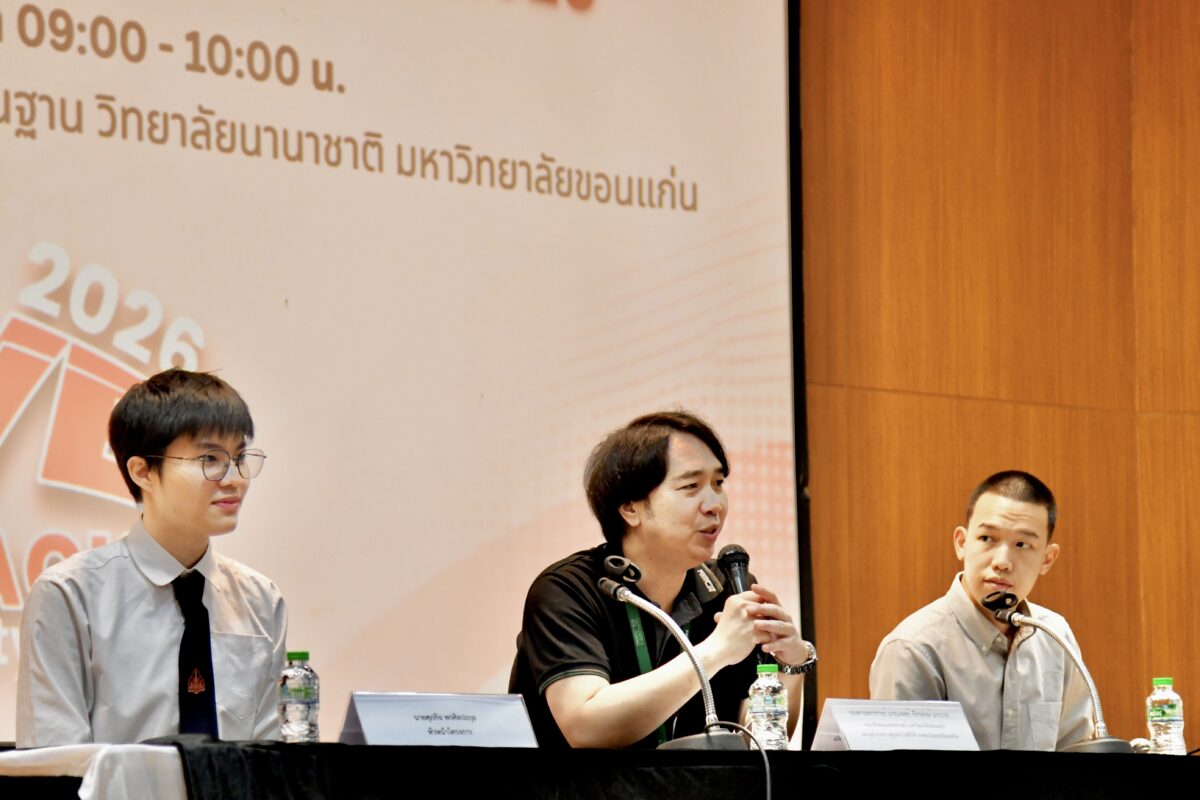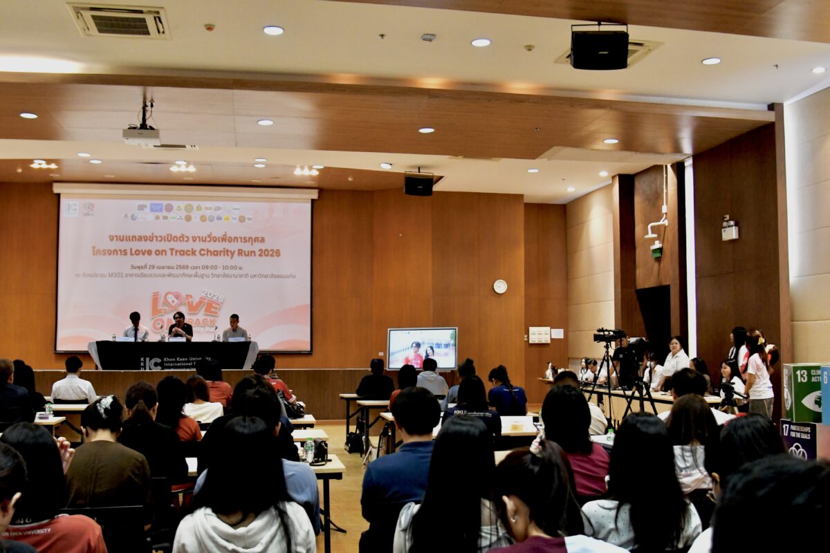 On 29 April 2026, Khon Kaen University International College (KKUIC) held a press conference to announce the “Love on Track Charity Run 2026,” a student-led initiative aimed at raising awareness of cardiac health and fundraising for essential medical equipment. The event was detailed by Associate Professor Pattarapong Makarawate, M.D., Director of the Queen Sirikit Heart Center of the Northeast, Khon Kaen University; Assistant Professor Dr. Chayapat Pathumnakul, the Project Advisor; and Mr. Supakit Pornsinlapakun, a fourth-year student in International Entrepreneurship and the Project Leader. The conference, held at the M301 Meeting Room in the Learning Complex and Basic Skill Development Building at KKUIC, was well attended by members of the media, faculty, students, and the public.