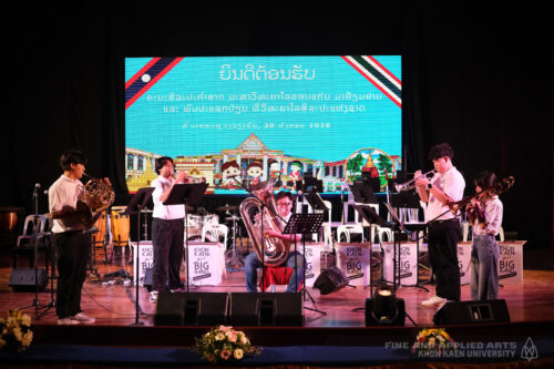 KKU Faculty of Fine and Applied Arts Embarks on ‘Music Tour’ Project to Enhance Student Potential for International Stage and Strengthen Thai–Lao Music Cooperation (Fiscal Year 2026) The project, led by the Western Music Programme, aimed to elevate performance standards and foster international experience for students in Vientiane, Lao PDR. 4 February 2026 13:30 น.