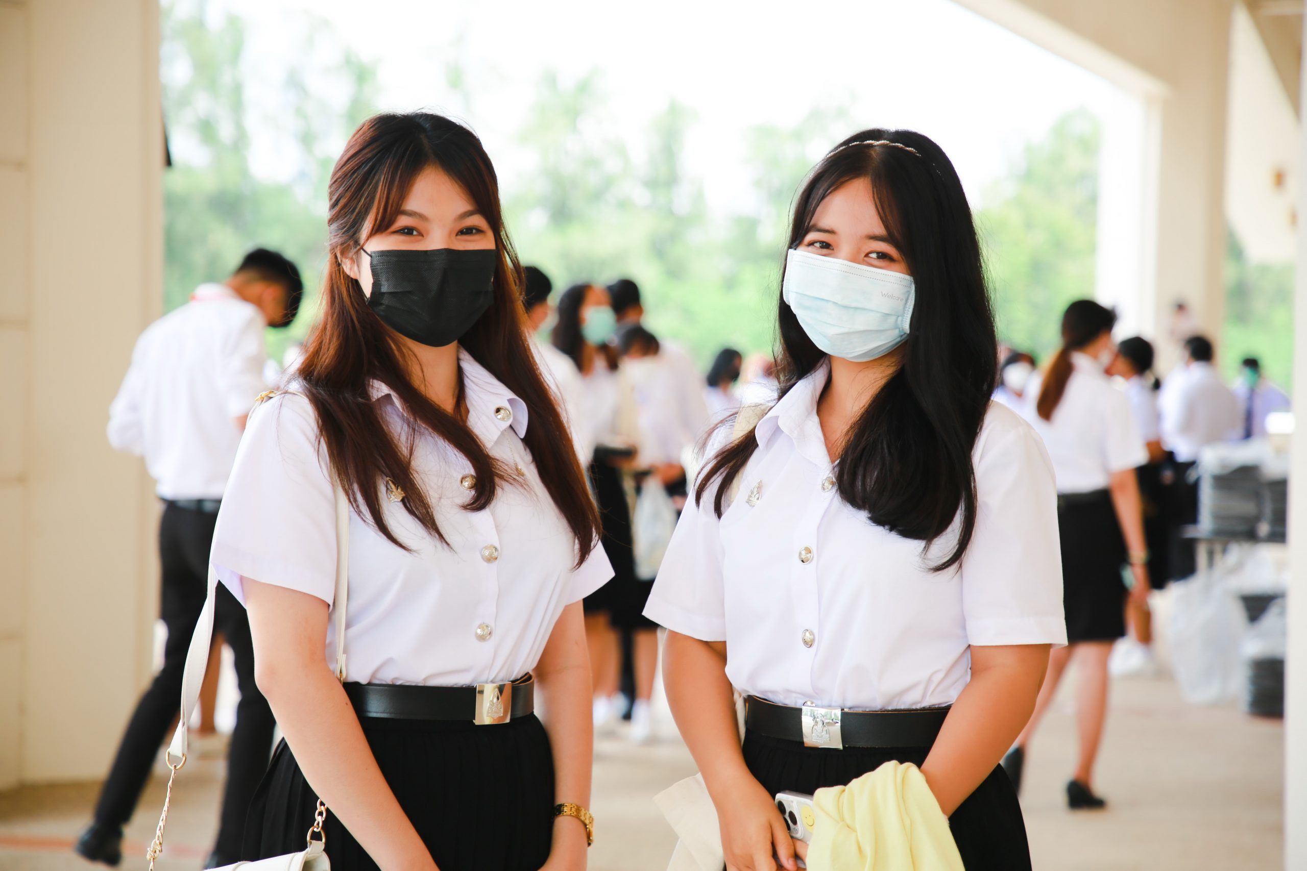 นักศึกษาใหม่จากคณะเทคนิคการแพทย์  มหาวิทยาลัยขอนแก่น (น้องเซน )ด้ายซ้าย ( น้องชล) ด้านขวา  เล่าว่า ก่อนหน้านี้เคยมามหาวิทยาลัยขอนแก่น รู้สึกว่า ร่มรื่น และมหาวิทยาลัยที่มีชื่อเสียง อยากจะมาเรียนที่นี่เป็นทุนเดิมอยู่แล้ว  สิ่งที่ประทับใจคือพี่สตาฟที่ดูแลอย่างดี ผู้บริหาร อธิการบดี คณบดี เป็นกันเองน่ารัก การแสดงต้อนรับสร้างสรรค์ และสนุกมาก รู้สึกอบอุ่น ทำให้มีแรงบันดาลใจว่า จะเรียนอย่างมีความสุข ได้ความรู้ ความคิด และทักษะ ไปต่อยอดในชีวิตในอนาคต