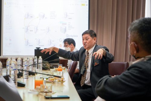 และใน เวลา 15.00 น. คณะกรรมการส่งเสริมกิจการมหาวิทยาลัยขอนแก่น พบปะเยี่ยมชม สํานักเทคโนโลยีดิจิทัล ห้องประชุมกาลพฤกษ์ 5 ชั้น 2 อาคารสิริคุณากร โดยมี ดร. กิตติ์ เธียรธโนปจัย ผู้อำนวยการสำนักเทคโนโลยีดิจิทัล พร้อมด้วยบุคลากรผู้อำนวยการสำนักเทคโนโลยีดิจิทัล ให้การต้อนรับ และนำเสนอแนวทางการบริหารงานภายใต้ นโยบาย Digital Transformation และแลกเปลี่ยนความคิดเห็น ประเด็นที่น่าสนใจต่าง ๆ อีกด้วย