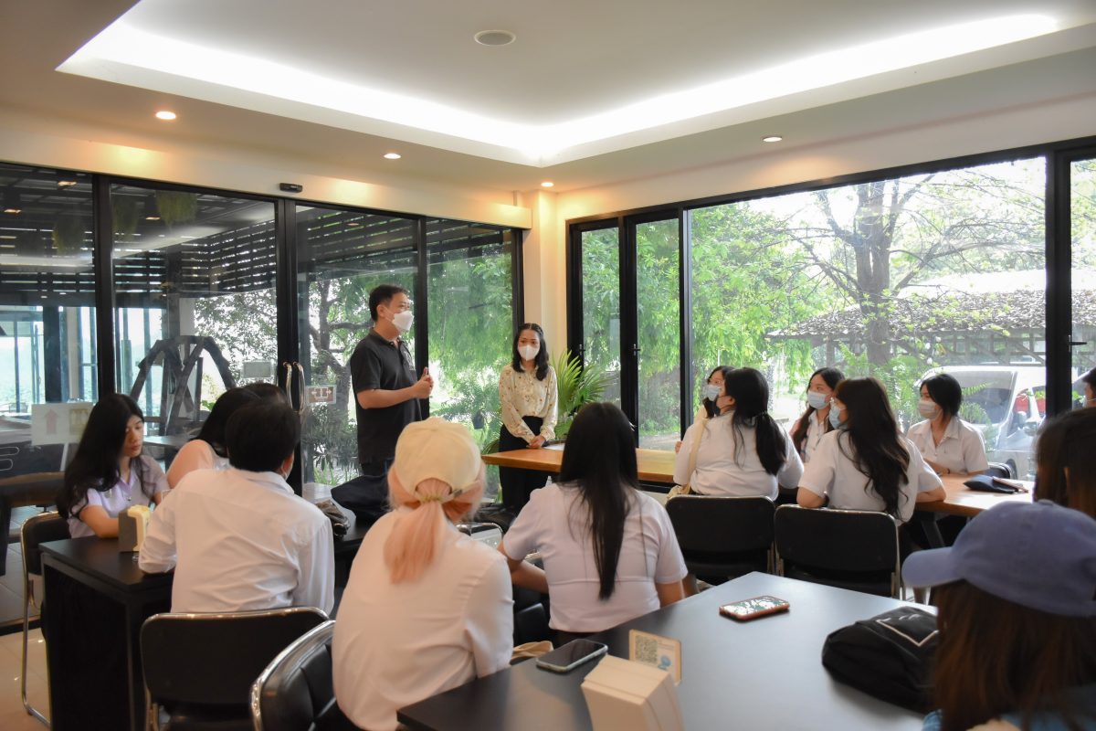 ต่อมาในช่วงพักกลางวัน คณะนักศึกษาได้เดินทางไปรับประทานอาหารกลางวัน ณ โรงแรมบัวลินน์ หนองคาย และได้รับโอกาสจากคุณธัญพงศ์ ทวีพานิชย์ ผู้จัดการโรงแรม พูดคุยบรรยายและเล่าประสบการณ์ในการทำธุรกิจโรงแรมและร้านกาแฟ พร้อมทั้งทักษะที่สำคัญในการประกอบอาชีพในอนาคต ได้แก่ การเปิดใจเรียนรู้ พร้อมรับมือกับความเปลี่ยนแปลง และหมั่นพัฒนาตนเองอย่างต่อเนื่อง