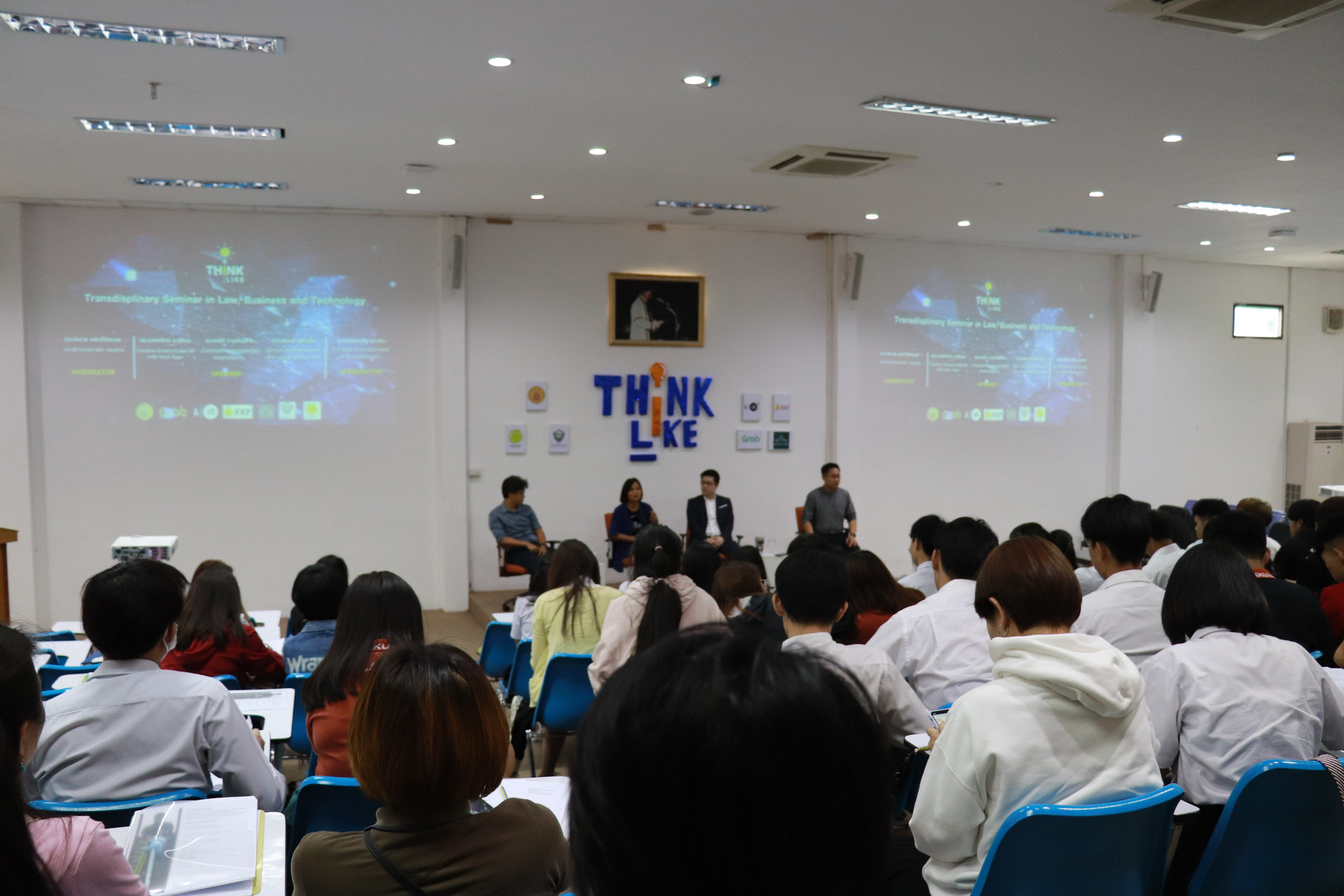 วันที่ 23 มกราคม 2563 คณะนิติศาสตร์ ร่วมกับ หอการค้าจังหวัดขอนแก่น และบริษัทขอนแก่นพัฒนาเมืองจัดเสวนาวิชาการเชิงบูรณาการระหว่าง กฎหมาย ธุรกิจ และเทคโนโลยี (Transdisplinary Seminar in Law, Business and Technology) ให้หัวข้อ Think Like ณ ห้องทองใบ ทองเปาด์ คณะนิติศาสตร์ มหาวิทยาลัยขอนแก่น โดย อาจารย์ปริศนา คำชาย ผู้ช่วยคณบดีฝ่ายการพัฒนานักศึกษา ได้กล่าวเปิดและต้อนรับผู้เข้าร่วมงาน ประกอบด้วยนักศึกษา และผู้ที่สนใจเข้าร่วมจำนวนกว่า 200 คน