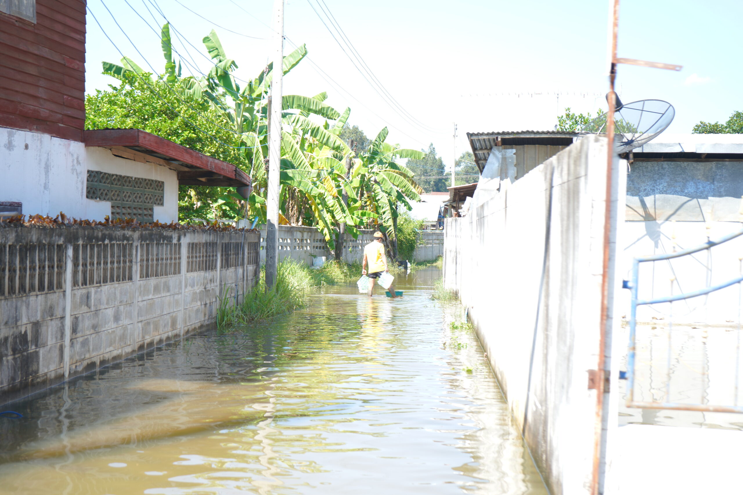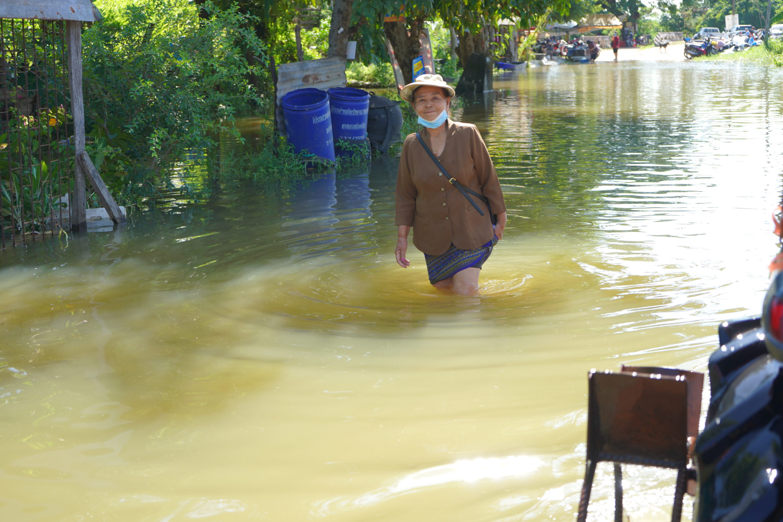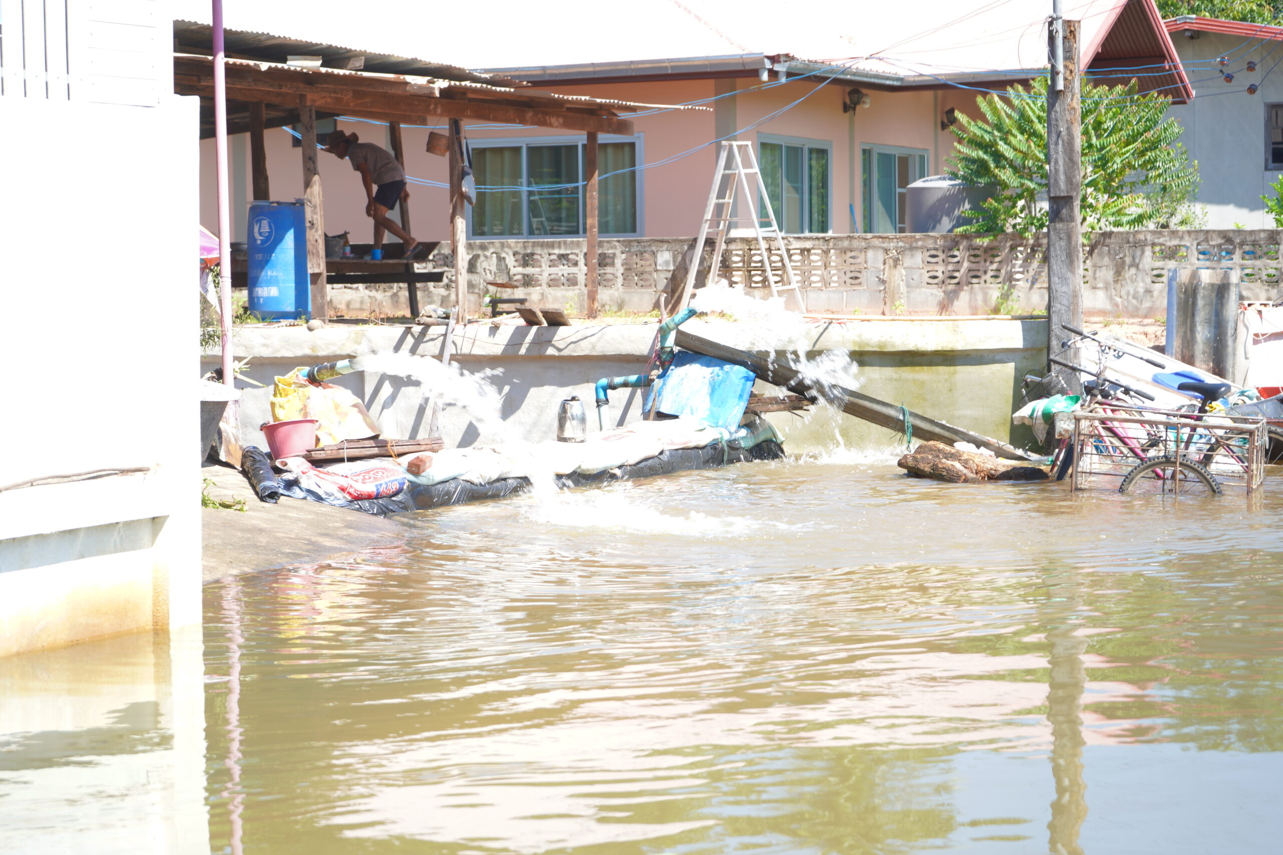 โดย นายวิมล ศรีละโครต ผู้ช่วยผู้ใหญ่บ้านบ้านดงพอง ได้ให้ข้อมูลในครั้งนี้ว่า “ในพื้นที่ บ้านดงพอง หมู่10 ตำบลศิลา อำเภอเมืองขอนแก่น มีผู้ประสบภัยน้ำท่วม กว่า 400 หลังคาเรือน รวมทั้งวัดท่าราษฎร์ ซึ่งได้รับความเดือดร้อนจากภัยน้ำท่วมนานกว่า 1 สัปดาห์ ซึ่งสาเหตุเกิดจากระดับน้ำที่เก็บกักของเขื่อนอุบลรัตน์ อยู่ที่ร้อยละ 133 ของความจุอ่าง ทำให้การระบายน้ำที่ชุมชนได้รับแจ้งจากเขื่อนฯและคณะกรรมการบริหารจัดการน้ำ ที่วันนี้มีการปรับการระบายน้ำที่ 54 ล้าน ลบ.ม. และจะขยับขึ้นแบบขั้นบันไดทำให้มวลย้ำจากเขื่อนอุบลรัตน์ที่ระบายลงสู่แม่น้ำพองได้ไหลท่วมพื้นที่ 4 หมู่บ้านของ ต.ศิลา และหนึ่งในนั้น คือพื้นที่ หมู่10 บ้านดงพอง ระดับน้ำวันนี้ความสูงอยู่ที่ 50-100 ซม. ขณะที่บางจุดมีน้ำท่วมสูงถึง 150 ซม. และเริ่มมีกลิ่นเหม็น