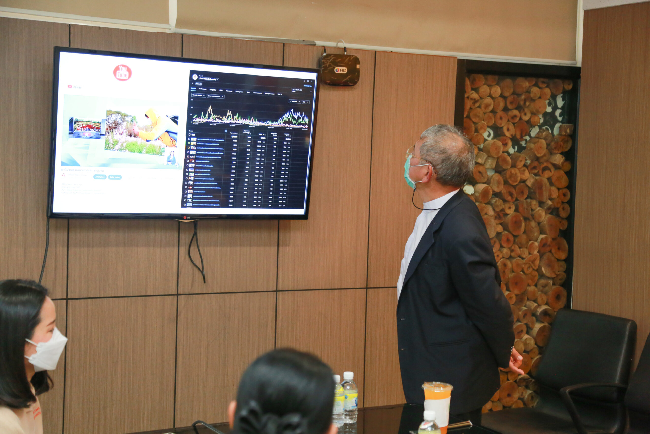 การรับการตรวจประเมิน เริ่มต้นโดย อ.ณัฐสมล ธนกุลรังสฤษดิ์ ผู้ช่วยอธิการบดีฝ่ายกิจการพิเศษ นำเสนอผลการดำเนินงานตามตัวชี้วัดของการประเมิน ประกอบด้วย ผลการดำเนินงานที่โดดเด่น ผลการดำเนินงานที่สอดคล้องและสนับสนุนประเด็นยุทธศาสตร์ หรือ OKR ที่รับผิดชอบ การปรับปรุงผลการดำเนินงานที่สำคัญ และผลการดำเนินงานอื่น ๆ ที่เกี่ยวข้อง ภายหลังการเสร็จสิ้นการนำเสนอ คณะกรรมการให้ความสนใจซักถามข้อมูลเพิ่มเติม พร้อมให้คำแนะนำในด้านการขับเคลื่อนภารกิจของ กองสื่อสารองค์กรให้บรรลุตามแผนและสอดคล้องตามยุทธศาสตร์ที่ตั้งไว้ต่อไป หลังจากเสร็จสิ้นการนำเสนอผลการดำเนินงาน ผู้ช่วยอธิการบดีฝ่ายกิจการพิเศษ และผู้อำนวยการกองสื่อสารองค์กร ได้นำคณะกรรมการตรวจประเมินฯ เข้าเยี่ยมชมสตูดิโอเคเคยูแชนแนล