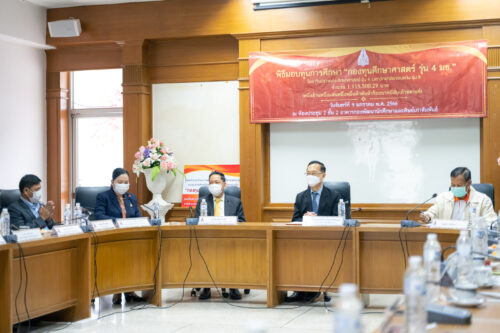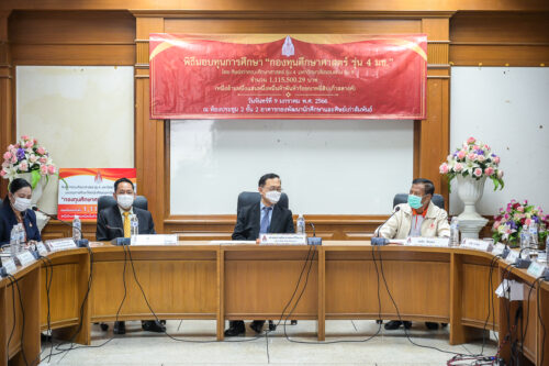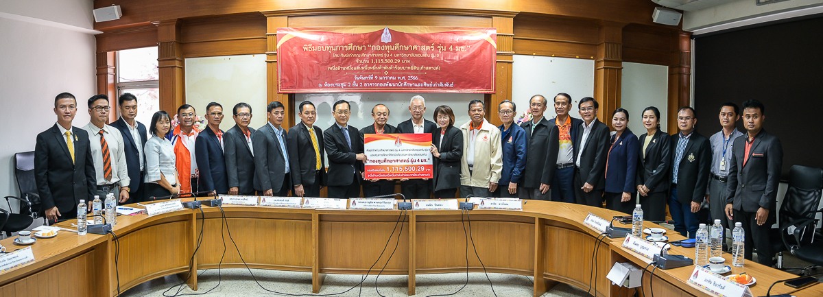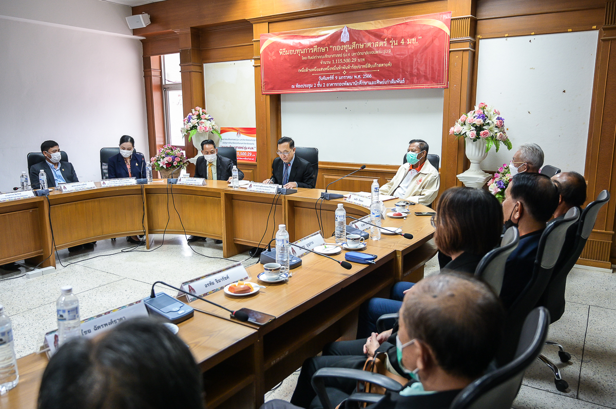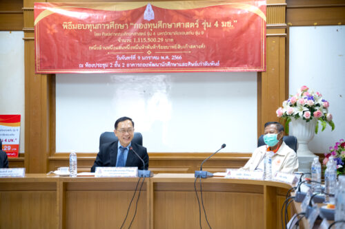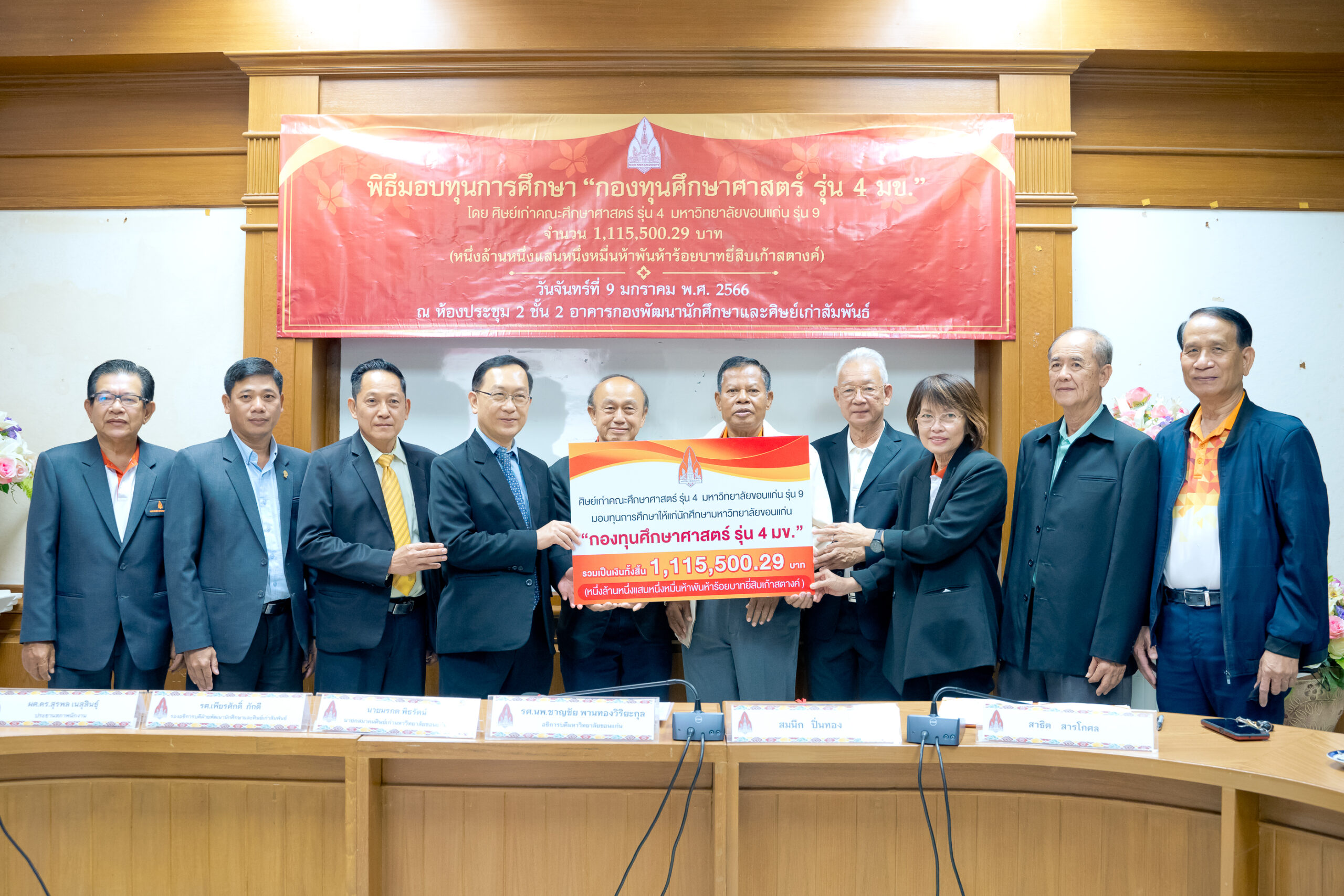 เมื่อวันที่ 9 มกราคม 2566 เวลา 15.00 น. รศ.นพ.ชาญชัย พานทองวิริยะกุล อธิการบดีมหาวิทยาลัยขอนแก่น รับมอบทุนการศึกษา ในพิธีมอบทุนการศึกษา กองทุนศึกษาศาสตร์ รุ่น 4 มข. โดยมี ผู้อำนวยการสมนึก ปิ่นทอง อดีตผู้อำนวยการกองกิจการนักศึกษา ประธานกองทุนศิษย์เก่าคณะศึกษาศาสตร์ รุ่น 4 เป็นประธานส่งมอบ และมีอธิการบดีเป็นประธานรับมอบทุนการศึกษาแก่มหาวิทยาลัยขอนแก่น เป็นเงินจำนวน 1,115,500.29 บาท ทั้งนี้ได้รับเกียรติจากผู้บริหารมหาวิทยาลัย และตัวแทนพี่ศิษยเก่าคณะศึกษาศาสตร์รุ่น 4 ร่วมงานจำนวนมาก ณ ห้องประชุม ชั้น 2 อาคารกองพัฒนานักศึกษาและศิษย์เก่าสัมพันธ์