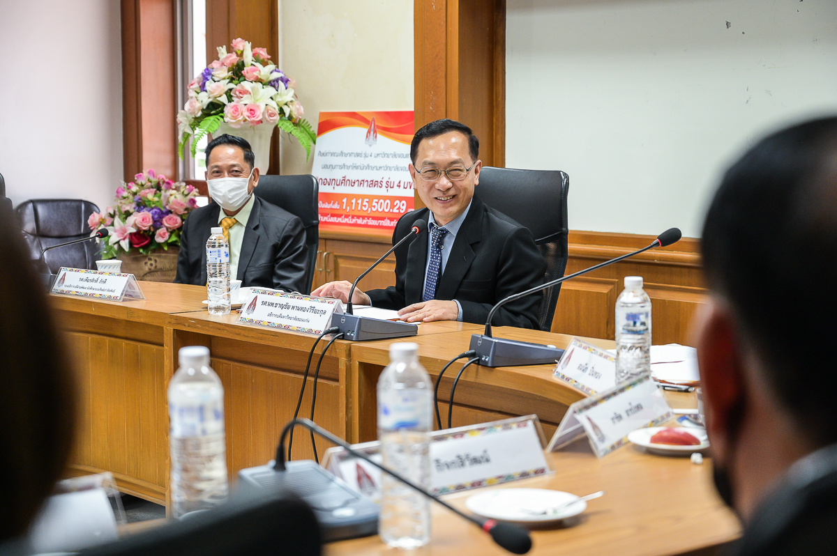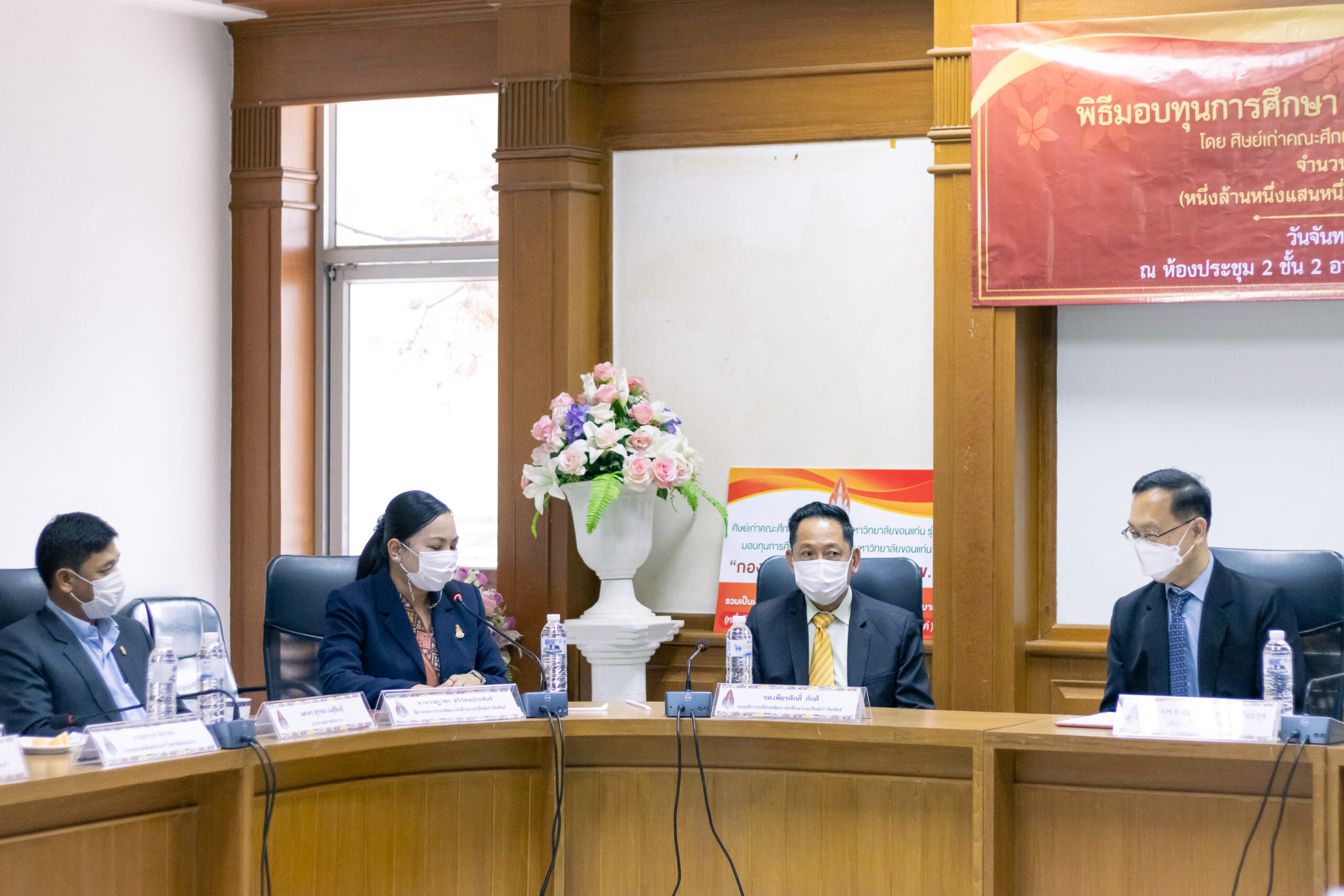 รศ.นพ.ชาญชัย พานทองวิริยะกุล อธิการบดีมหาวิทยาลัยขอนแก่น เผยว่า ขอขอบคุณพี่ ๆ รุ่น 4 คณะศึกษาศาสตร์ ที่ได้ร่วมกับมหาวิทยาลัย ส่งมอบโอกาสทางการศึกษาแก่น้องนักศึกษาให้มีศักยภาพในการเล่าเรียนเพิ่มขึ้น เชื่อว่าไม่มีใครรู้จักวิถีชีวิตน้องดีไปกว่าพี่ ๆ เพราะพี่เคยศึกษามหาวิทยาลัยเดียวกัน พี่รู้ดีที่สุดว่าน้องนั้นขาดเหลือสิ่งใด ฉะนั้นเมื่อพี่ได้ศึกษาเล่าเรียนจนจบ และเมื่อทุกท่านประสบความสำเร็จในชีวิต ทั้งการงาน การเงิน ครอบครัว จึงหยิบยื่นโอกาสคืนกลับสู่น้อง ๆ ซึ่งถือเป็นเรื่องน่ายินดี ขอขอบพระคุณแทนน้อง ๆ ที่จะมีกำลังใจในการเรียน และมอบสิ่งดีกลับคืนสู่สังคมต่อไป