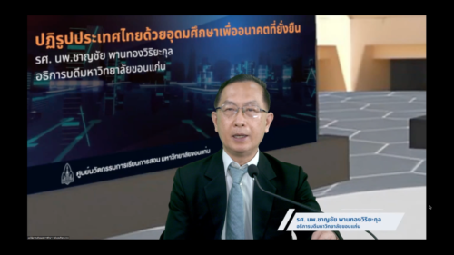 รศ. นพ.ชาญชัย  พานทองวิริยะกุล  อธิการบดีมหาวิทยาลัยขอนแก่นกล่าวว่า  ปัจจุบันคือยุคการปฏิวัติอุตสาหกรรมดิจิทัล ซึ่งด้านหนึ่งเป็นภาวะคุกคามต่อมหาวิทยาลัย ขณะเดียวกันก็เป็นโอกาสที่จะนำเทคโนโลยีเหล่านี้มาเป็นเครื่องมือการปฏิรูปการศึกษา  ปรับเปลี่ยนกระบวนการเรียนรู้ของผู้เรียนให้สามารถ คิดวิเคราะห์ สังเคราะห์ เพราะคุณสมบัตินี้จะส่งให้บัณฑิตเป็นผู้นำในการพัฒนาสังคมด้านต่าง ๆ รวมถึงสร้างเทคโนโลยี สร้างผลิตภัณฑ์ใหม่ที่มีมูลค่าสูง ใช้ความรู้ในหลากหลายมิติช่วยขับเคลื่อนประเทศให้ก้าวหน้าอย่างยั่งยืน