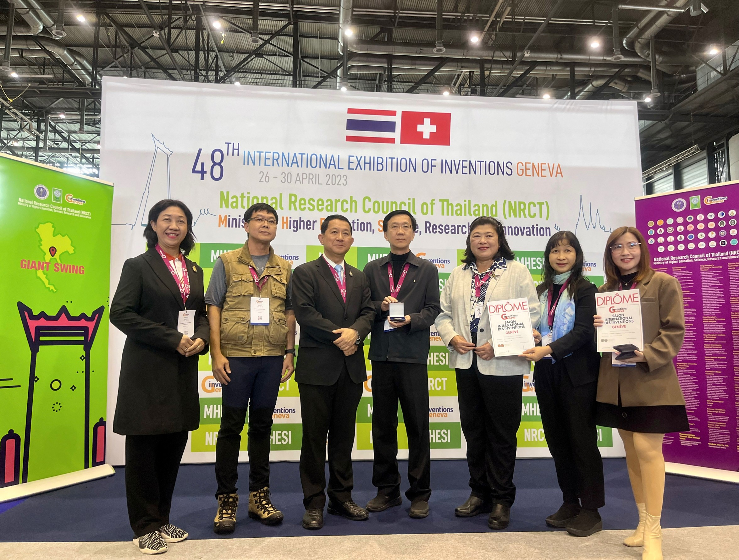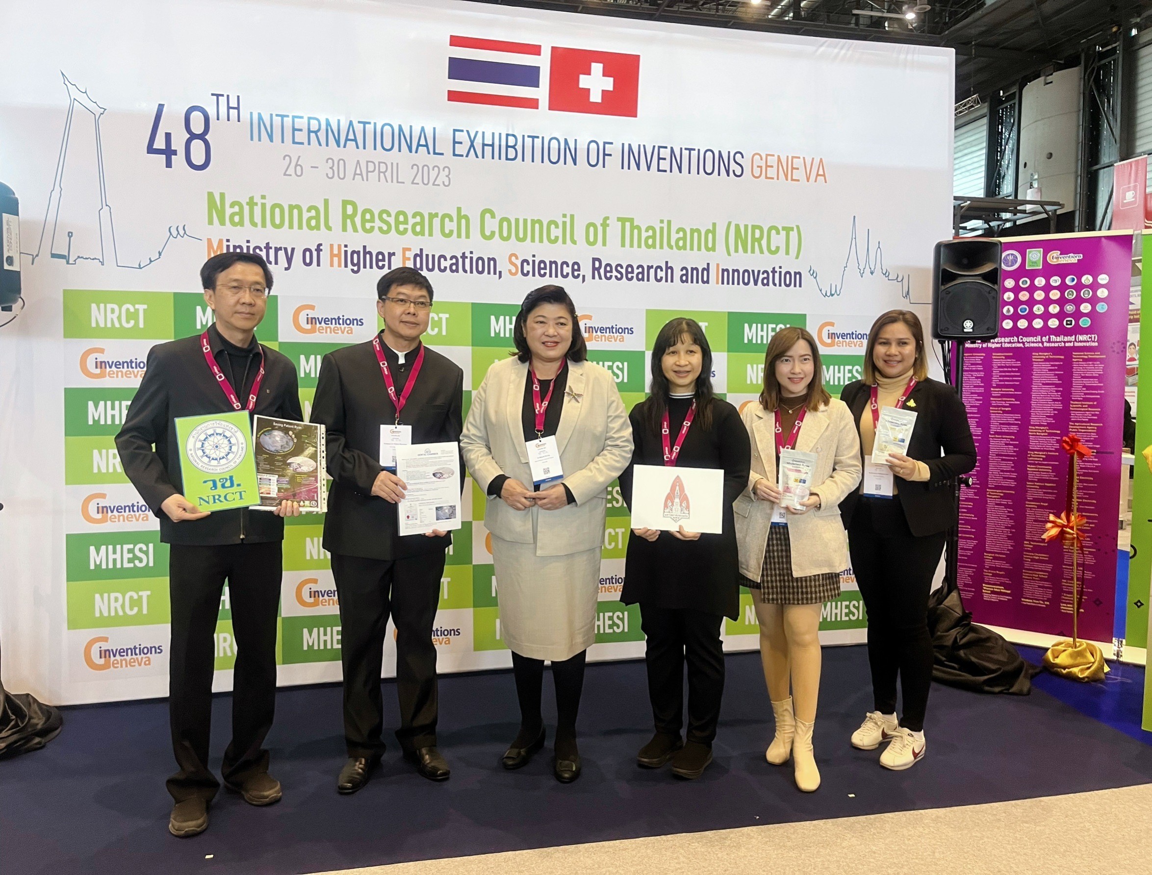 มหาวิทยาลัยขอนแก่นเข้าร่วมนำเสนอผลงานในเวทีการประกวดสิ่งประดิษฐ์ระดับนานาชาติ ครั้งที่ 48 หรือ “The 48th International Exhibition of Inventions Geneva” ณ ศูนย์ประชุม Palexpo นครเจนีวา สมาพันธรัฐสวิส ซึ่งจัดขึ้นในระหว่างวันที่ 26-30 เมษายน 2566 ที่ผ่านมา ซึ่งมีผู้เข้าร่วมงานจากนานาประเทศ ทั้งภาครัฐ เอกชน นักลงทุน มากกว่า 50,000 คน และซึ่งมีผลงานนวัตกรรมเข้าร่วมการประกวดมากกว่า 825 ผลงาน จาก 42 ประเทศ โดยรางวัลที่มหาวิทยาลัยขอนแก่นได้รับมีดังนี้