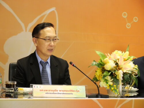 รองศาสตราจารย์ชาญชัย พานทองวิริยะกุล อธิการบดีมหาวิทยาลัยขอนแก่น กล่าวว่า มหาวิทยาลัยขอนแก่นมีวิสัยทัศน์มหาวิทยาลัยวิจัยและพัฒนาชั้นนำระดับโลก มีองค์ความรู้ วิจัย หลากหลายที่พร้อมเผยแพร่ให้แก่สังคม โครงการการใช้โปรตีนจากแมลงให้เป็นแหล่งวัตถุดิบในอุตสาหกรรมการผลิตอาหารสัตว์เปนอีกโครงการหนึ่งในหลายโครงการ ที่เรามั่นใจว่าจะสามารถยกระดับคุณภาพชีวิตของประชาชนให้ดีขึ้น สร้างรายได้ในครัวเรือนเพิ่มนำไปสู่ความอยู่ดีมีสุขของเกษตรกรในภาคตะวันออกเฉียงเหนืออย่างยั่งยืน