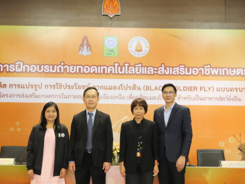 ด้าน รองศาสตราจารย์ปรเมศ บรรเทิง รองคณบดีฝ่ายวิจัย นวัตกรรมและการต่างประเทศ คณะเกษตรศาสตร์ กล่าวว่า คณะเกษตรศาสตร์สนับสนุนองค์ความรู้ เพื่อการฝึกอบรมแปรรูปแมลงโปรตีนครบวงจร ด้วยโรงเรือนเลี้ยงแมลงโปรตีนต้นแบบ ห้องทดลอง เทคโนโลยีที่ทันสมัย สามารถช่วยลดต้นทุนค่าอาหารสัตว์ให้แก่เกษตรกรได้ และสร้างรากฐานองค์ความรู้ในด้านการผลิตแมลงโปรตีนสำหรับเป็นอาหารสัตว์ให้เกษตรกรสามารถนำไปปฏิบัติต่อยอดได้เกิดผลในวงกว้างในอนาคต