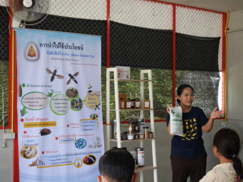“มีการจัดฝึกอบรม ณ โรงเรือนต้นแบบโรงเรือนต้นแบบการวิจัยและการผลิตแมลงอุตสาหกรรมแบบครบวงจร จำนวน 4 รุ่น รุ่นละ 25 คน ในแต่ละรุ่นดำเนินการฝึกอบรม เป็นระยะเวลา 2 วัน เป็นการบรรยายให้ความรู้เกี่ยวกับการเพาะเลี้ยงและผลิตแมลงโปรตีน การใช้ประโยชน์ และการแปรรูปจากแมลงโปรตีน พร้อมกับให้ผู้เข้าฝึกอบรมได้ฝึกปฏิบัติจริงด้วยตัวเองในแต่ละขั้นตอนของการผลิตเลี้ยงแมลงแบบครบวงจรอีกด้วย”