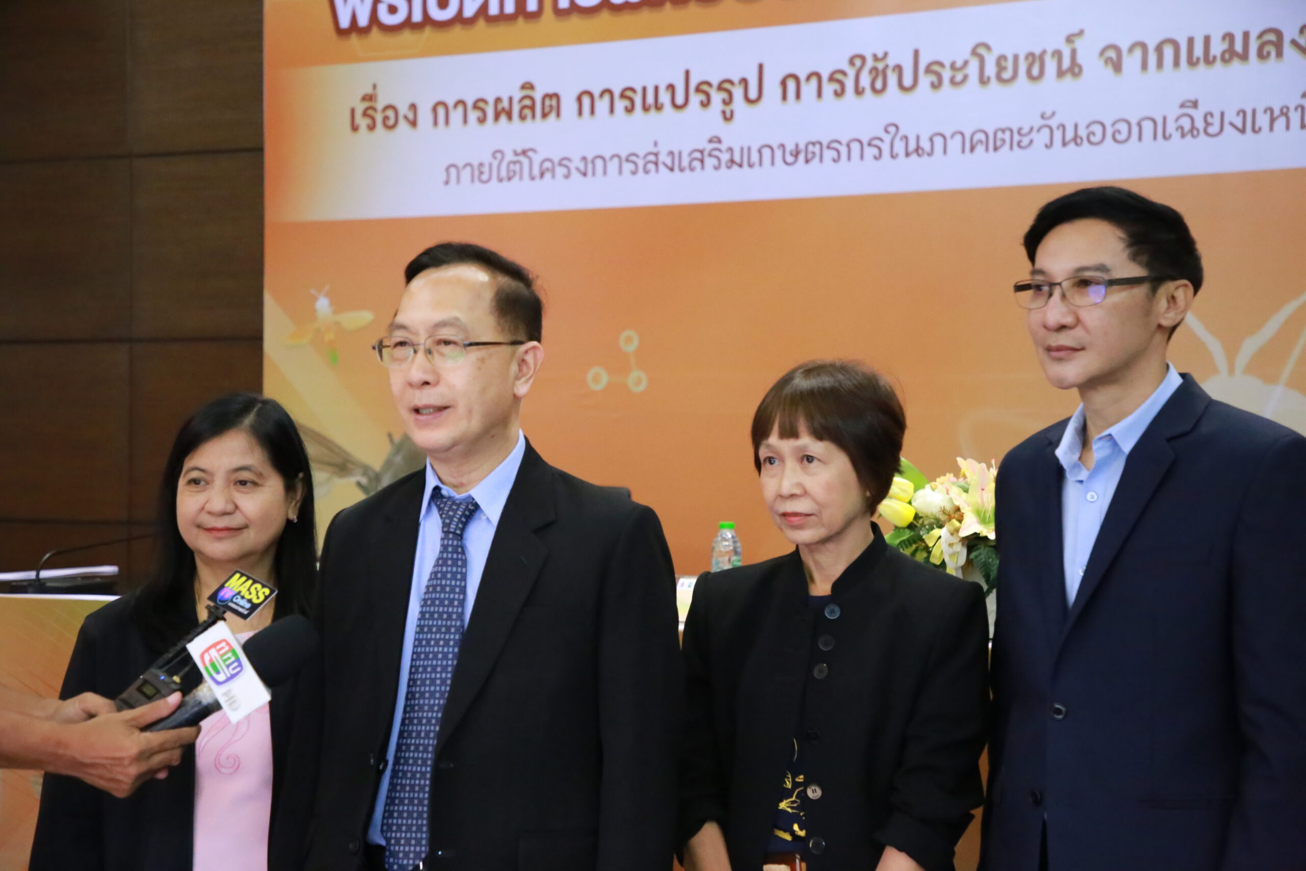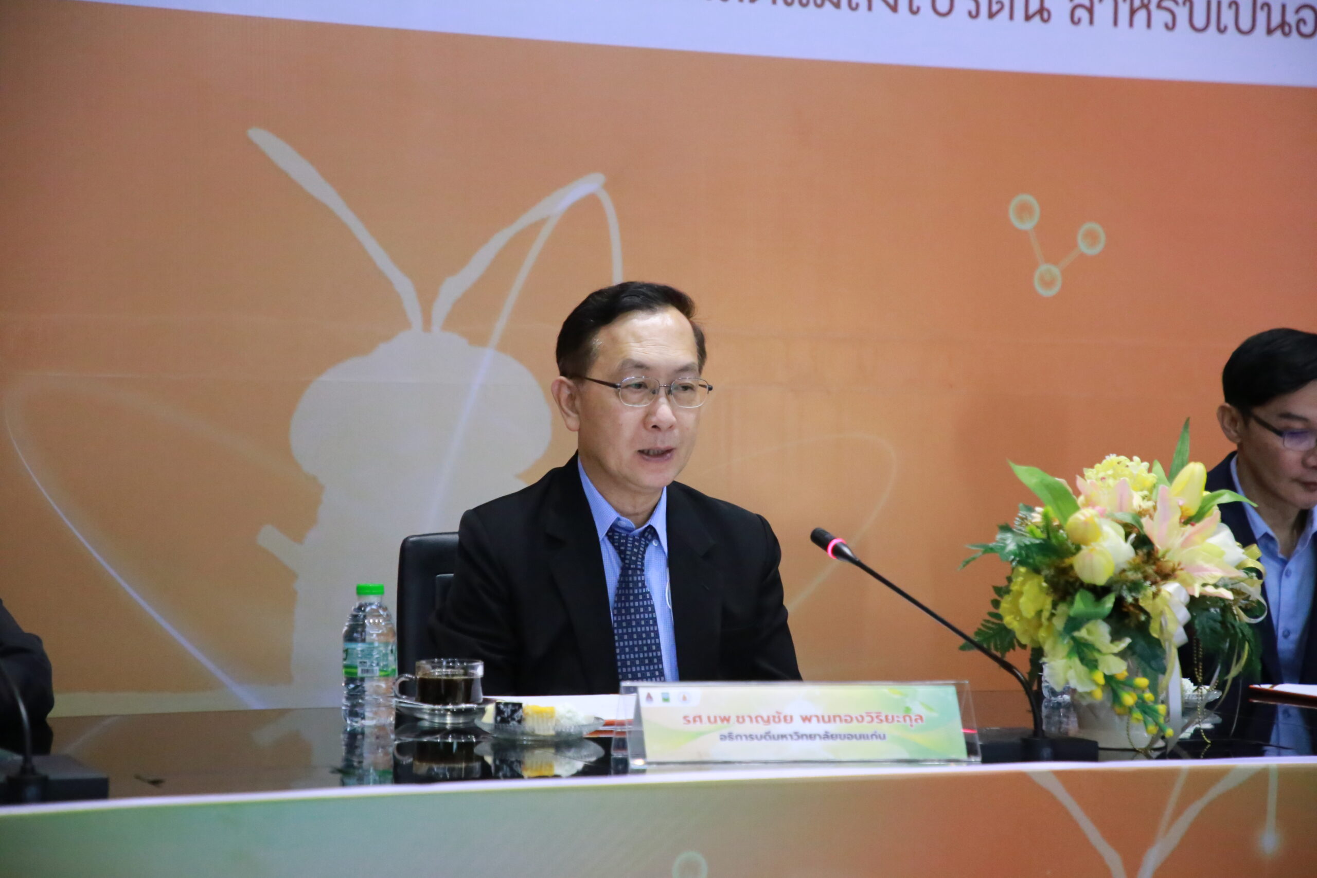 รองศาสตราจารย์ชาญชัย พานทองวิริยะกุล อธิการบดีมหาวิทยาลัยขอนแก่น กล่าวว่า มหาวิทยาลัยขอนแก่นมีวิสัยทัศน์มหาวิทยาลัยวิจัยและพัฒนาชั้นนำระดับโลก มีองค์ความรู้ วิจัย หลากหลายที่พร้อมเผยแพร่ให้แก่สังคม โครงการการใช้โปรตีนจากแมลงให้เป็นแหล่งวัตถุดิบในอุตสาหกรรมการผลิตอาหารสัตว์เปนอีกโครงการหนึ่งในหลายโครงการ ที่เรามั่นใจว่าจะสามารถยกระดับคุณภาพชีวิตของประชาชนให้ดีขึ้น สร้างรายได้ในครัวเรือนเพิ่มนำไปสู่ความอยู่ดีมีสุขของเกษตรกรในภาคตะวันออกเฉียงเหนืออย่างยั่งยืน