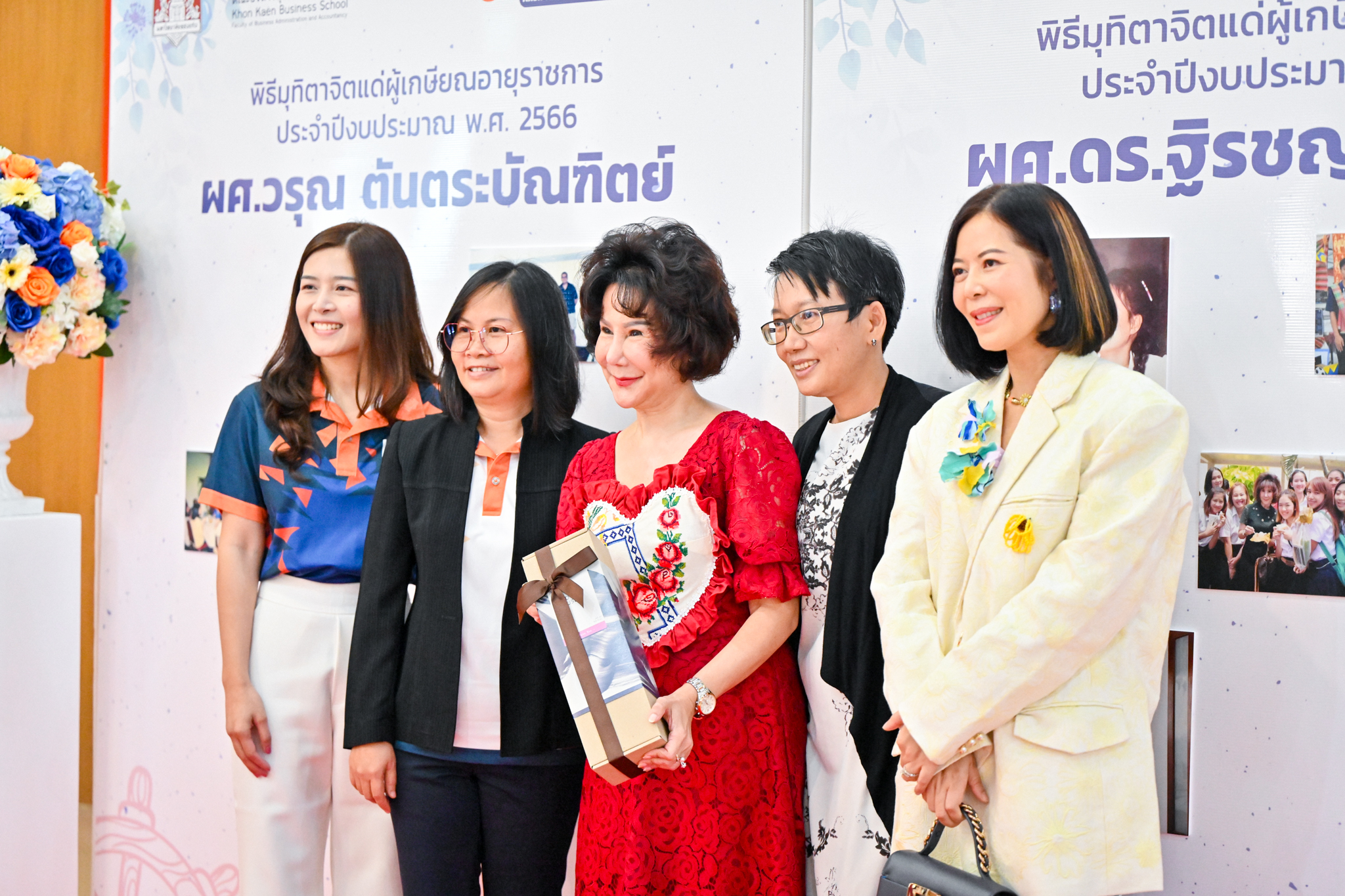 เมื่อวันที่ 28 กันยายน 2566 ที่ผ่านมา คณะบริหารธุรกิจและการบัญชี มหาวิทยาลัยขอนแก่น จัดพิธีมุทิตาจิตแด่ผู้เกษียณอายุราชการ ประจำปีงบประมาณ พ.ศ. 2566 เพื่อเชิดชูเกียรติผู้เกษียณอายุราชการคุณูปการยิ่งแก่คณะฯ ภายใต้ชื่องาน “ก้าวสำคัญ สู่วันที่สำเร็จ” โดยในปีนี้เป็นวาระการเกษียณอายุราชการของบุคลากรอันทรงคุณค่าของคณะบริหารธุรกิจและการบัญชี มหาวิทยาลัยขอนแก่น ประกอบด้วย ผู้ช่วยศาสตราจารย์ ดร.ฐิรชญา ชัยเกษม และ ผู้ช่วยศาสตราจารย์วรุณ ตันตระบัณฑิตย์ ซึ่งท่านนับได้ว่าเป็นผู้มอบสิ่งที่ดีที่สุดให้กับนักศึกษาและคณะฯ แนะแนวทางวิชาชีพกับลูกศิษย์ในรั้วฟ้าครามด้วยความรักด้วยความเอาใจใส่ และเป็นแบบอย่างที่ดีในการทำงาน การสร้างคุณงามความดีมาตลอดการปฏิบัติงาน