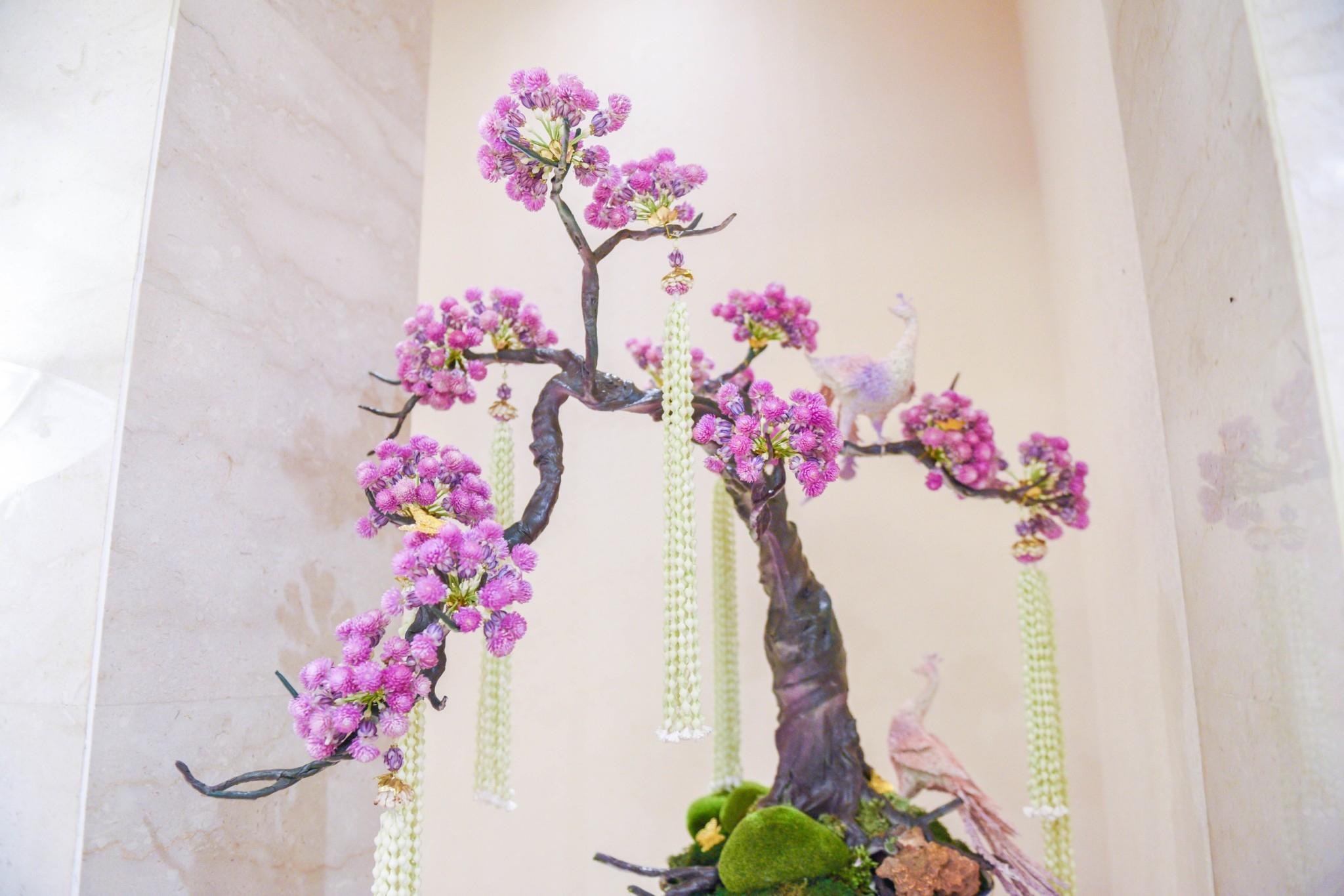 จุดที่ 2 บนบริเวณเวที มีการนำเอาอิทธิพลรูปแบบของลวดลายทั้งประแจจีน ลวดลายเครื่องลายครามต่างๆ ที่เป็นทั้งไทยและจีนมาผสมผสานมาออกแบบใหม่ ประดับตกแต่งใหม่ให้เกิดความสวยงามบนเวที ส่วนแท่นประทับของพระองค์บนเวทีมีการนำสัตว์มงคลของจีนทั้งมังกร หงษ์ สิงห์ มาประดับประดาตามความเชื่อที่ว่าสัตว์เหล่านี้เป็นสัตว์ที่เสริมบารมีของพระองค์พระมหากษัตริย์ หรือจักรพรรดิ์ที่ยิ่งใหญ่