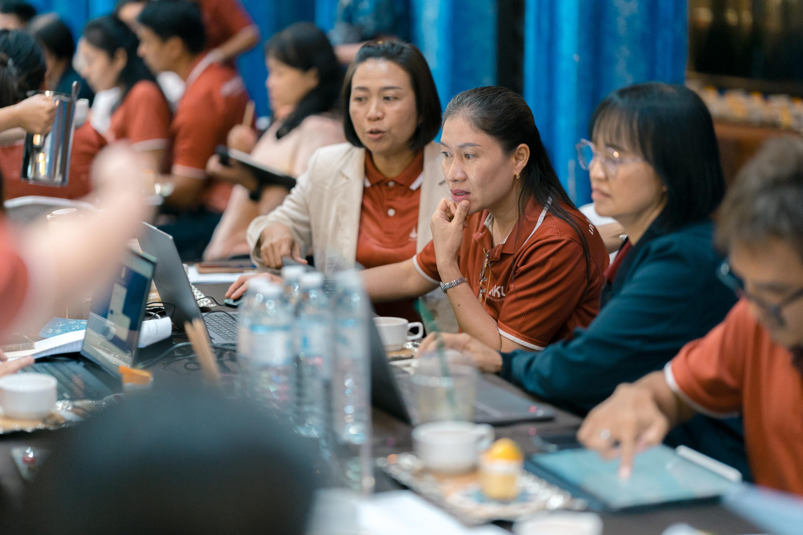 - การระดมความคิด (Brainstorm) : แบ่งกลุ่มร่วมวิเคราะห์ข้อมูลและออกแบบการจัดกิจกรรมเสริมหลักสูตรหรือคอร์ส เพื่อเติมเต็มการสร้างอัตลักษณ์สู่การวัดผลลัพธ์ที่วัดผลได้จริง โดยแบ่งกลุ่มบุคลากรเพื่อร่วมกันออกแบบแนวทางส่งเสริมอัตลักษณ์ทั้ง 4 ด้าน ได้แก่ E- Entrepreneurial (มีความคิดเชิงการประกอบการ) , G- Global-minded (มีมุมมองและความรู้ในระดับสากล) ,G- Growth-oriented (มุ่งเติบโตและพัฒนาอย่างต่อเนื่อง) , S- Sustainable-focused (ใส่ใจความยั่งยืน)