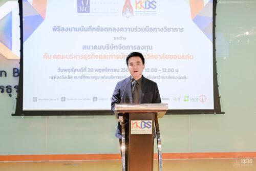 ดร.พงศ์พันธุ์ ศรัทธาทิพย์ รองคณบดีฝ่ายอุตสาหกรรมสัมพันธ์และความยั่งยืน คณะบริหารธุรกิจและการบัญชี กล่าวว่า สำหรับความร่วมมือดังกล่าว มีเป้าหมายสำคัญในการเตรียมความพร้อมด้านวิชาชีพทางการเงินให้แก่นักศึกษา ผ่านการพัฒนาทักษะ ความรู้ และประสบการณ์ที่จำเป็นต่อการทำงานจริง พร้อมสนับสนุนการสอบใบอนุญาตทางการเงินเพื่อส่งเสริมความพร้อมนักศึกษาก่อนก้าวเข้าสู่การทำงานอุตสาหกรรมการเงินและการลงทุน ความร่วมมือดังกล่าวยังมุ่งเปิดโอกาสให้นักศึกษาได้เข้าทำงานในสายอาชีพด้านการเงินและการลงทุนมากยิ่งขึ้น อีกทั้งเป็นเวทีในการแลกเปลี่ยนองค์ความรู้และนวัตกรรมระหว่างคณะบริหารธุรกิจและการบัญชี มหาวิทยาลัยขอนแก่น กับสมาคมบริษัทจัดการลงทุน ซึ่งจะช่วยยกระดับทักษะของนักศึกษาให้สอดคล้องกับความต้องการของภาคธุรกิจ และรองรับการเปลี่ยนแปลงของอุตสาหกรรมการเงินและตลาดทุนในปัจจุบันได้อย่างมีประสิทธิภาพ