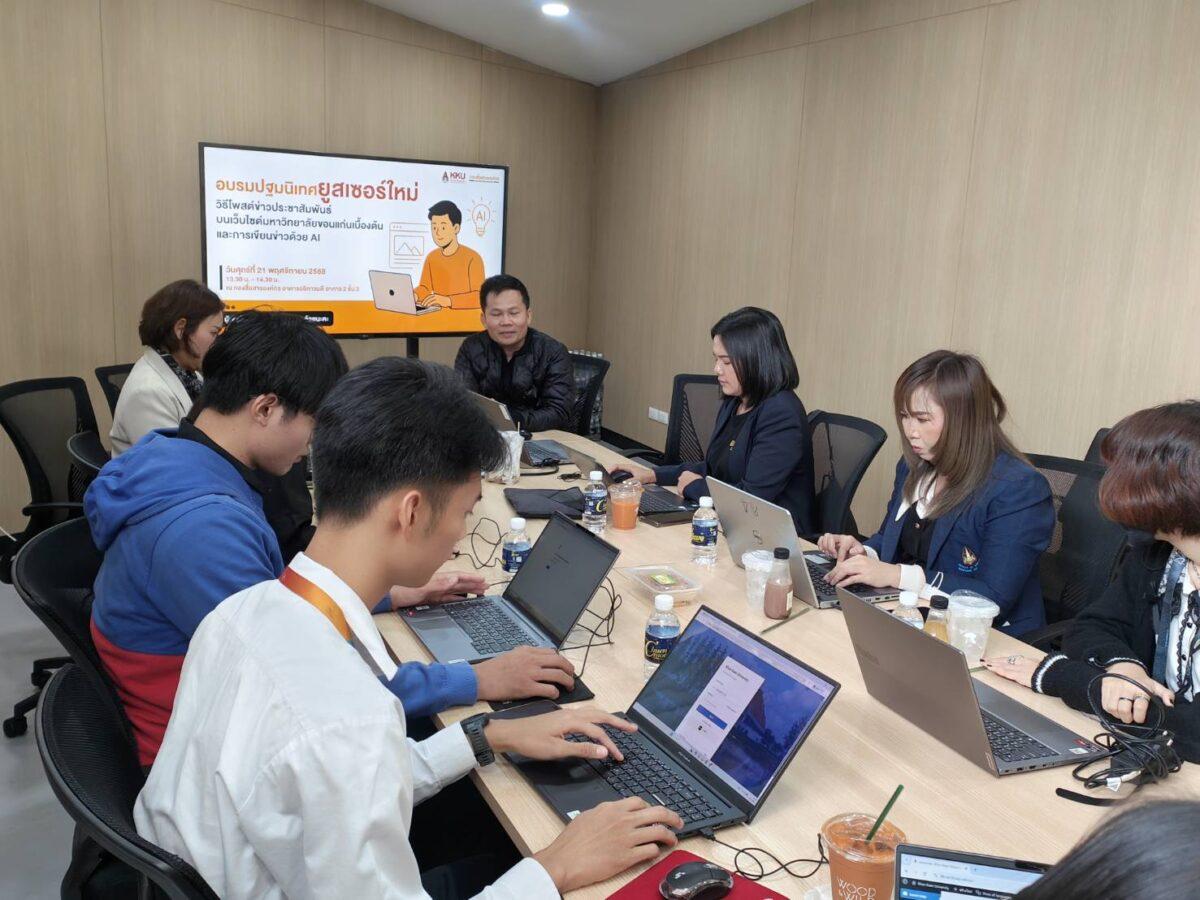 เมื่อวันที่ 21 พฤศจิกายน 2568 เวลา 13.30-14.30 น. กองสื่อสารองค์กร มหาวิทยาลัยขอนแก่น จัดอบรมปฐมนิเทศนักประชาสัมพันธ์รุ่นใหม่ หลักสูตร “การโพสต์ข่าวประชาสัมพันธ์บนเว็บไซต์มหาวิทยาลัยขอนแก่น และการเขียนข่าวด้วย AI” ณ ห้องประชุมกองสื่อสารองค์กร อาคารอธิการบดี อาคาร 2 ชั้น 3 โดยมีผู้เข้าร่วมอบรมจำนวน 20 คน