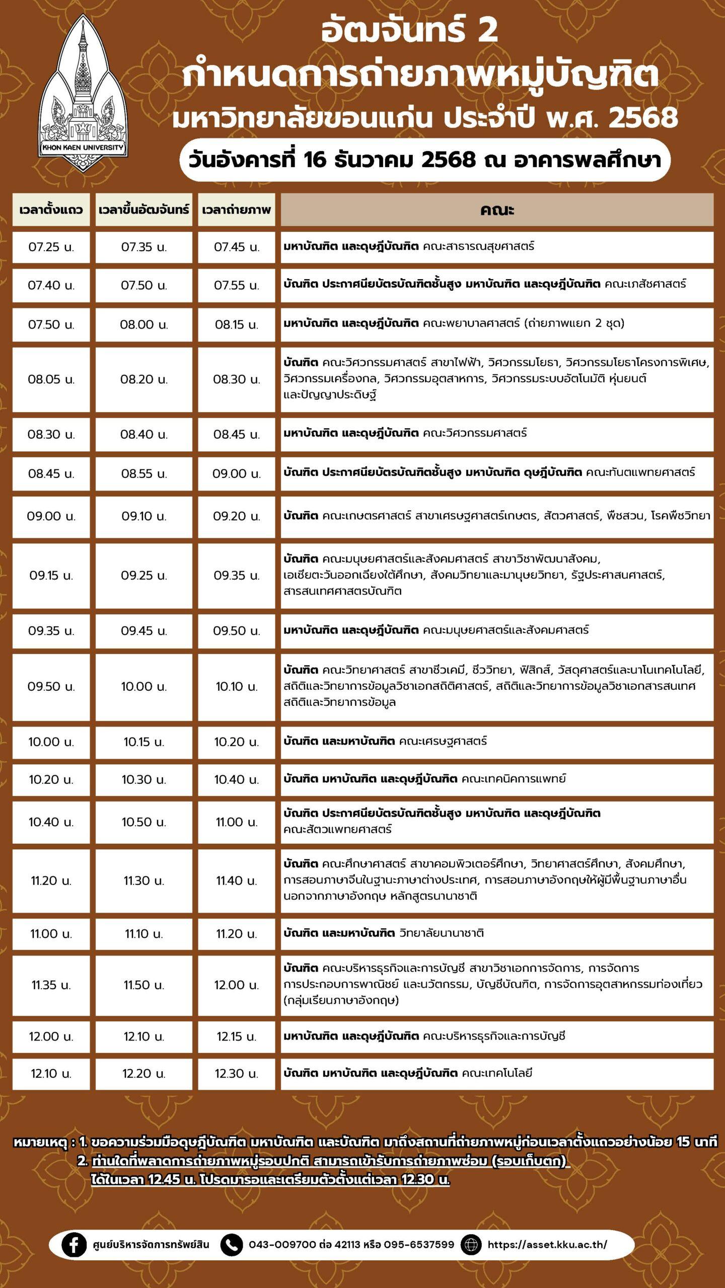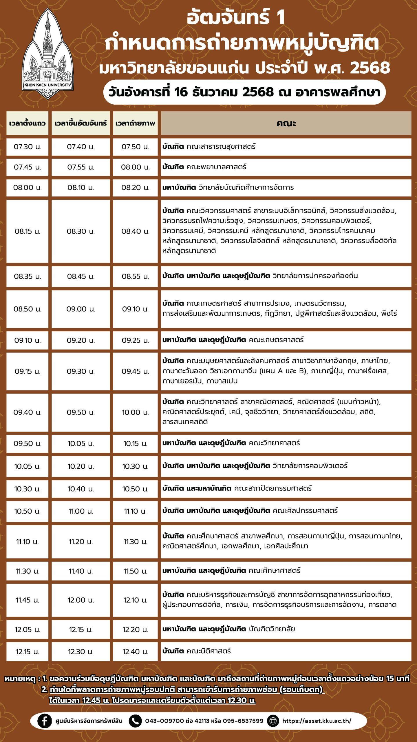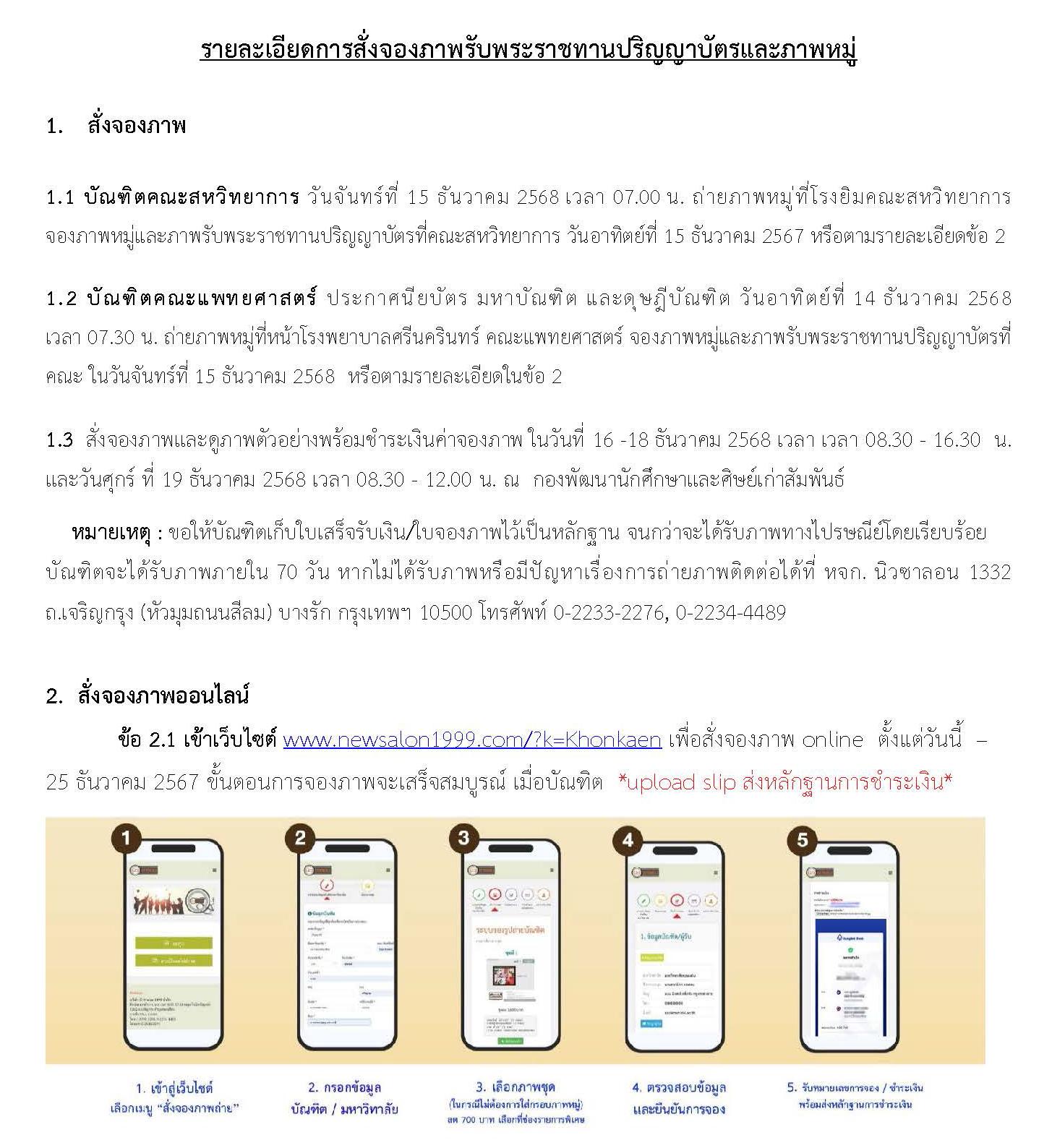 กำหนดการถ่ายภาพหมู่บัณฑิต และการจองภาพ ประจำปี 2568