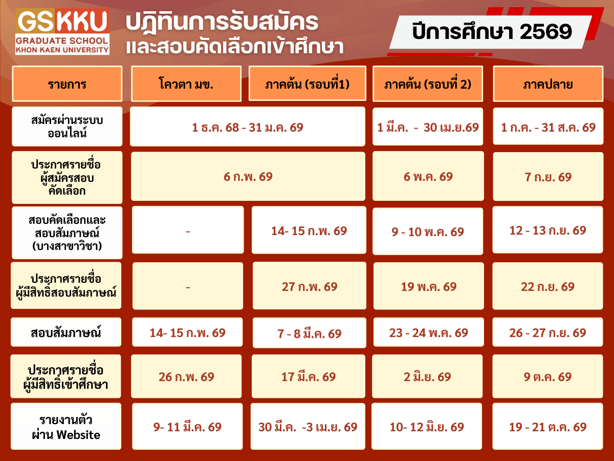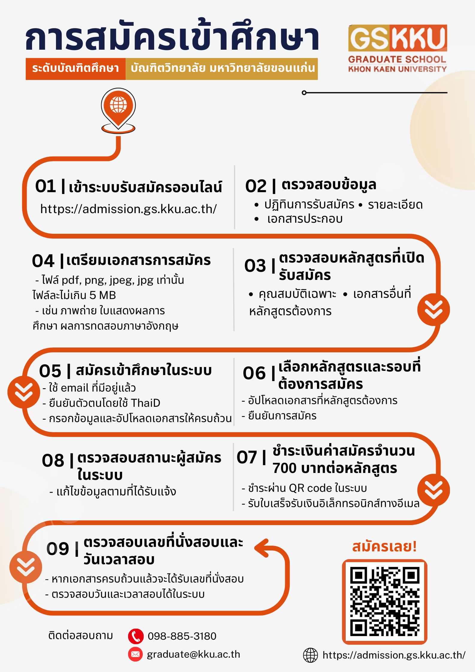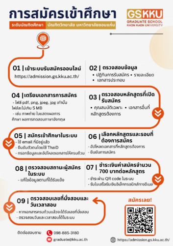 ผู้สนใจดูรายละเอียดและสมัครได้ที่ https://admission.gs.kku.ac.th/dashboard